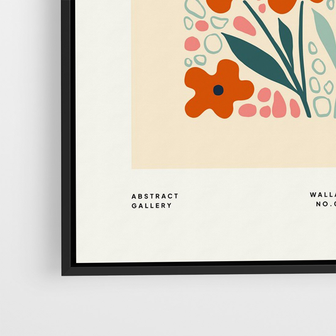 Ta minimalistyczna kompozycja kwiatów w pastelowych kolorach opiera się na graficznych kształtach, oddając esencję minimalizmu. To obraz, który w prosty sposób ukazuje piękno natury, wykorzystując abstrakcyjne formy.