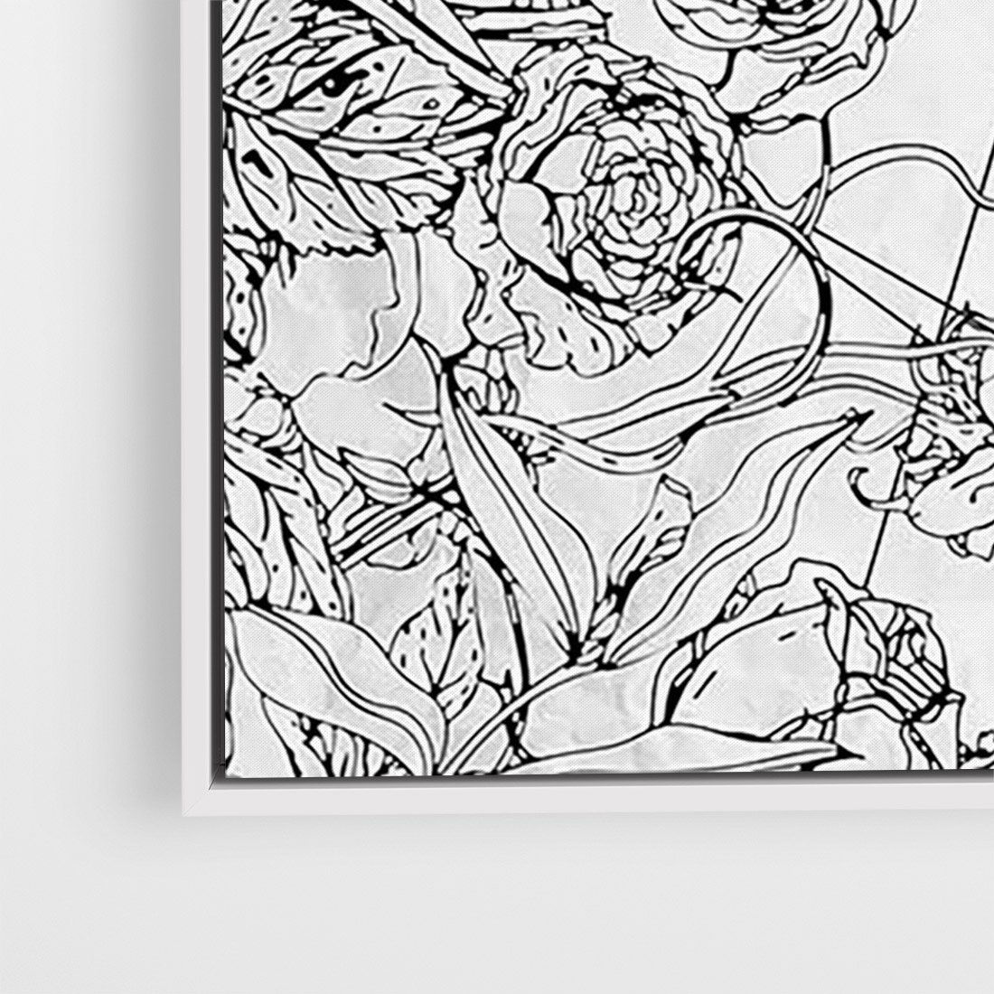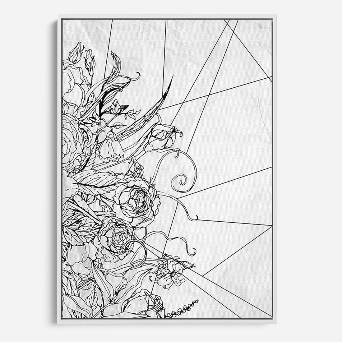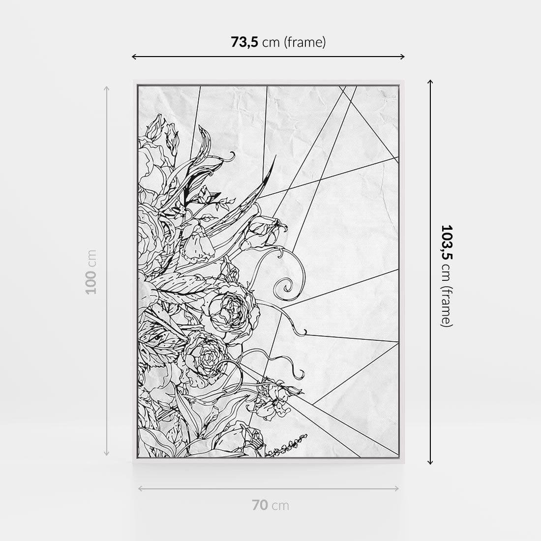 Obraz w ramie 70x100 - Refleksje w martwym punkcie - graficzny szkic, kompozycja kwiatów - rama biała