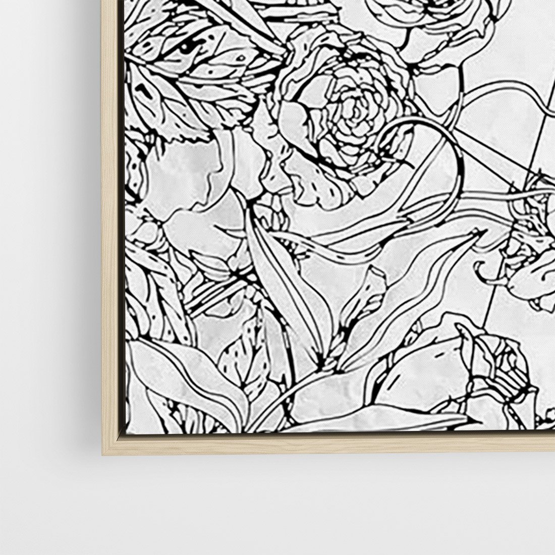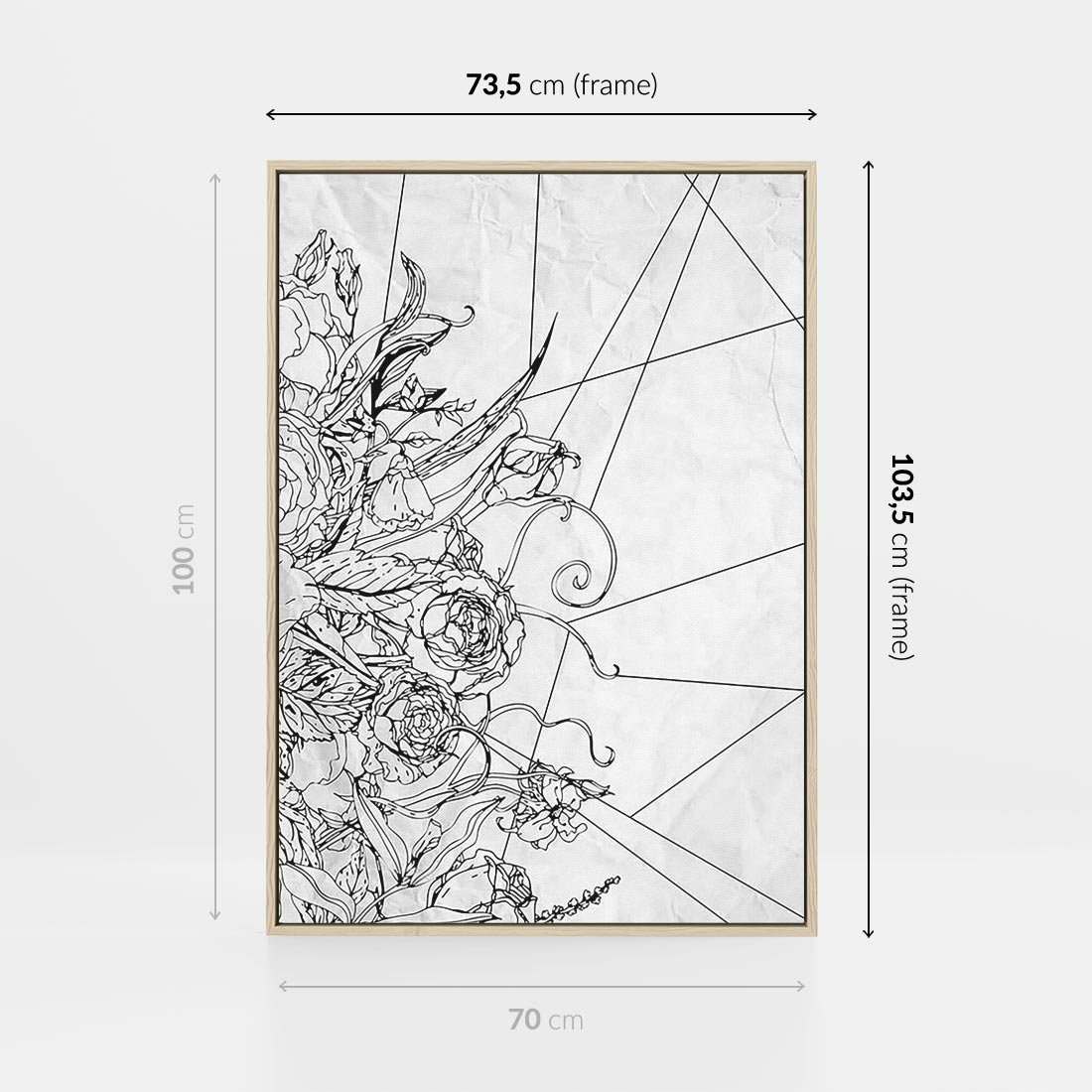Obraz w ramie 70x100 - Refleksje w martwym punkcie - graficzny szkic, kompozycja kwiatów - rama drewno