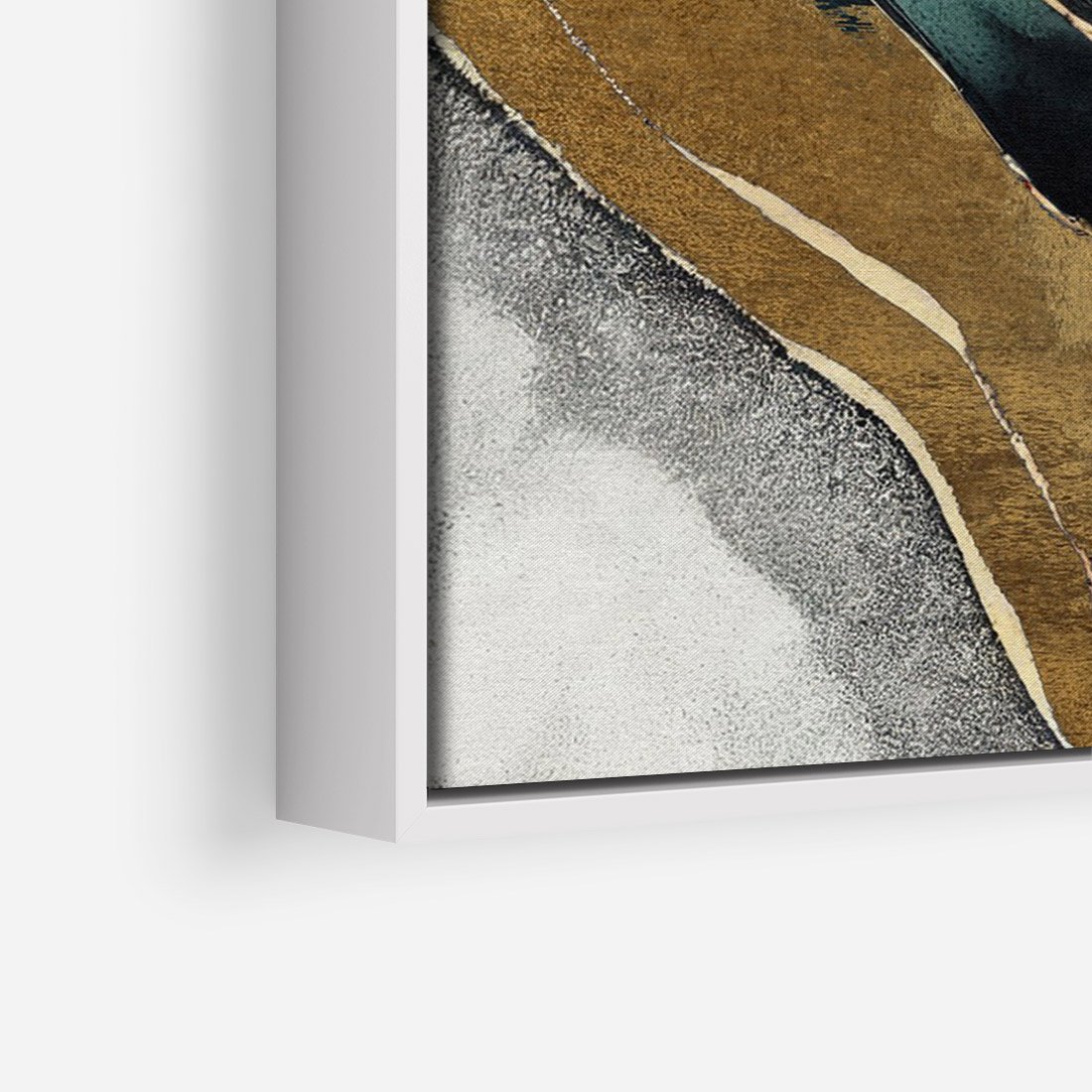 Obraz w ramie 70x100 - Refrakcje płynącej rzeczywistości - jak marmurowa rzeka, linie złota - rama biała