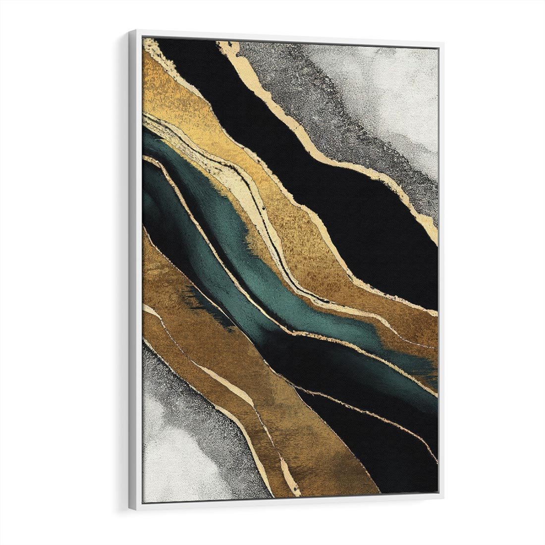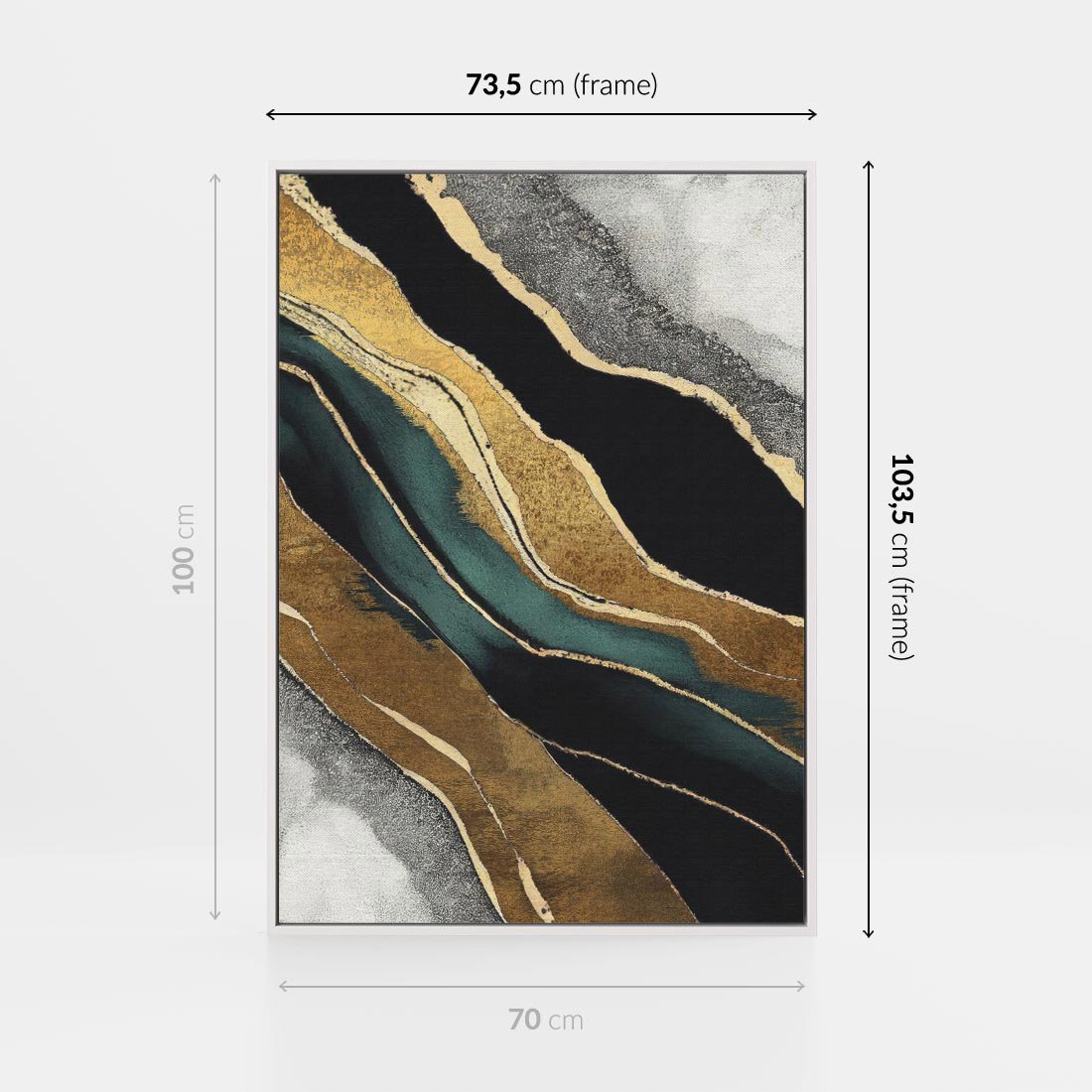 Wprowadź do swojego wnętrza fascynujący obraz abstrakcji o szarych odcieniach jak marmurowa rzeka, wzbogacony złotymi liniami. Kunsztowna kompozycja marmuru i szmaragdu nadaje mu wyjątkowej elegancji. Dzieło to stworzono dla miłośników sztuki, pragnących unikalnej dekoracji, która ożywi przestrzeń i wzbudzi zachwyt.