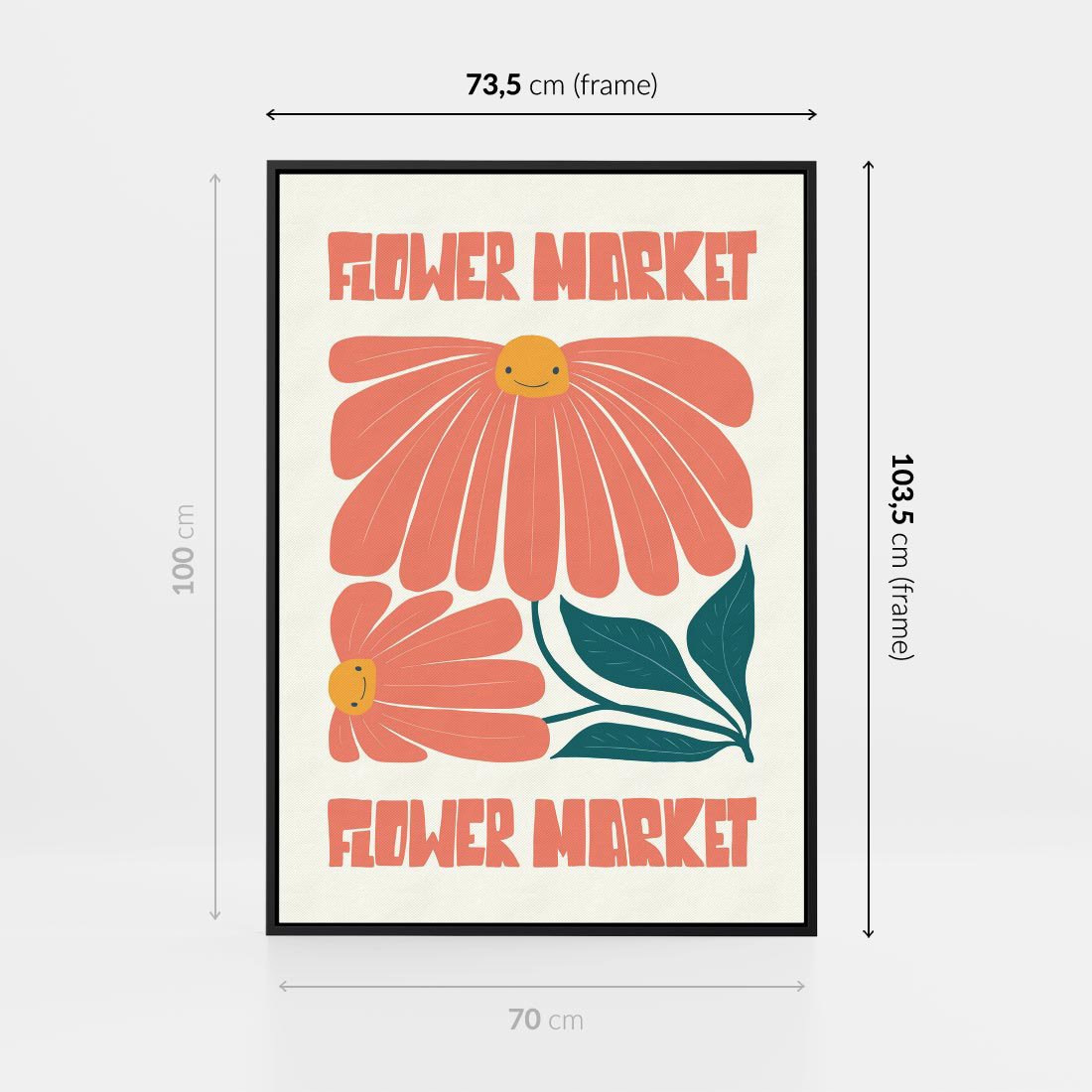 Obraz w ramie 70x100 - Retro Radość - typografia, wesołe kwiaty - rama czarna