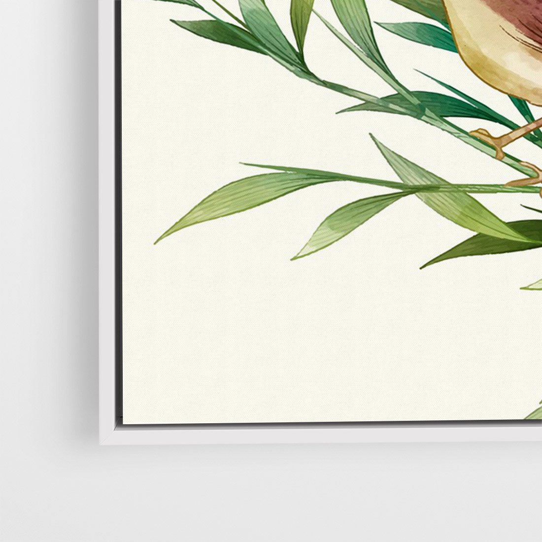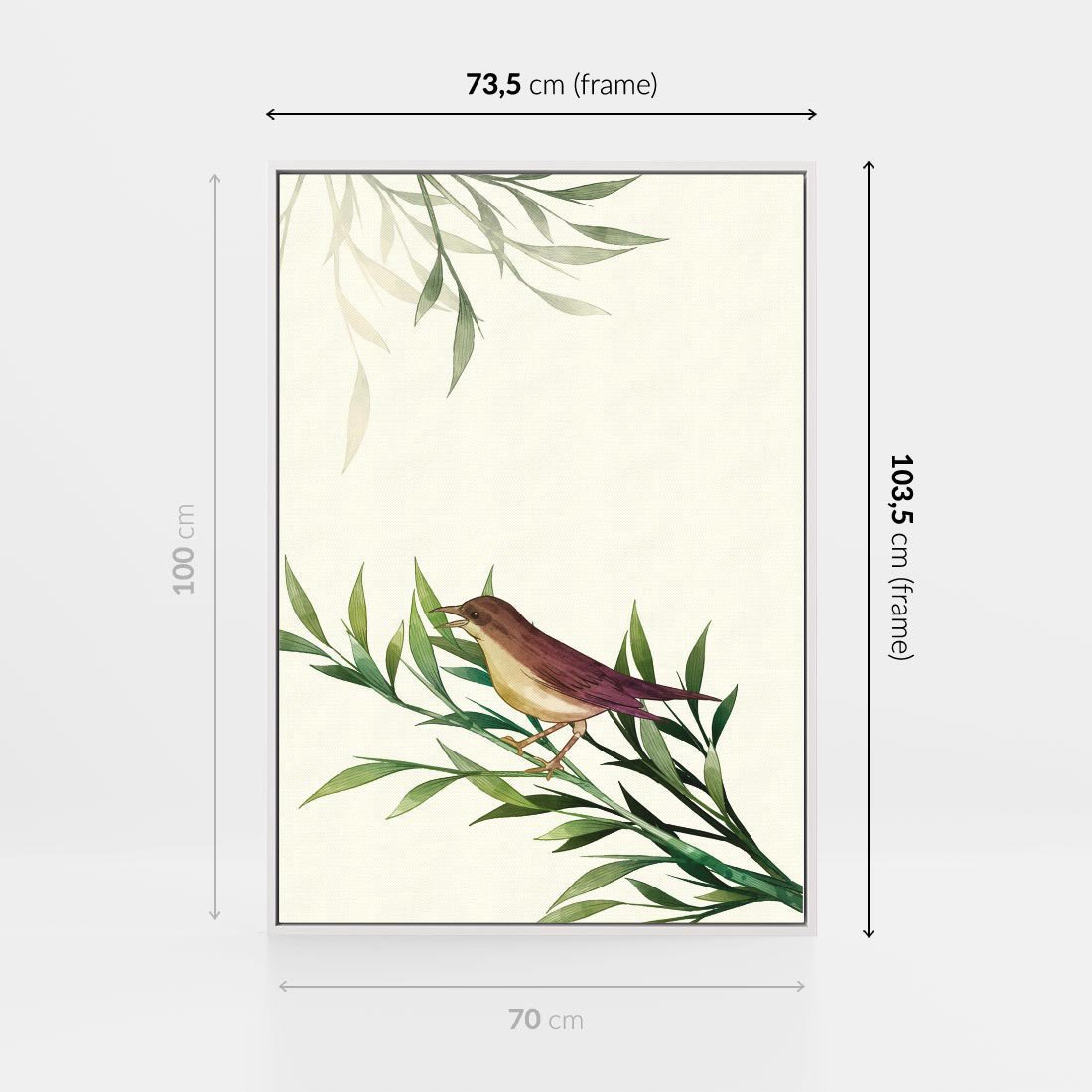 Obraz w ramie 70x100 - Roślinne Nastroje - japońska sztuka, ptak - rama biała