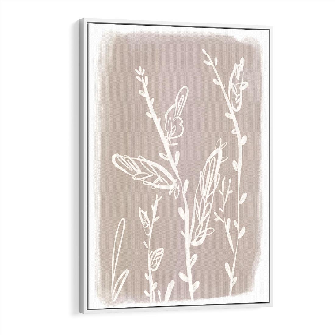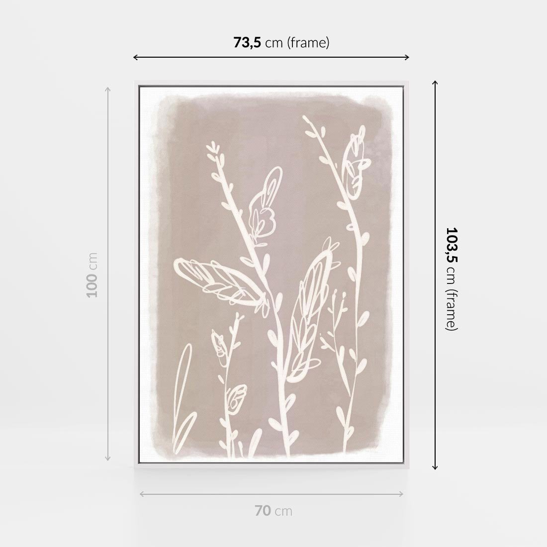 Obraz w ramie 70x100 - Roślinne Przeniknięcia - nowoczesny subtelny plakat, beżowy - rama biała