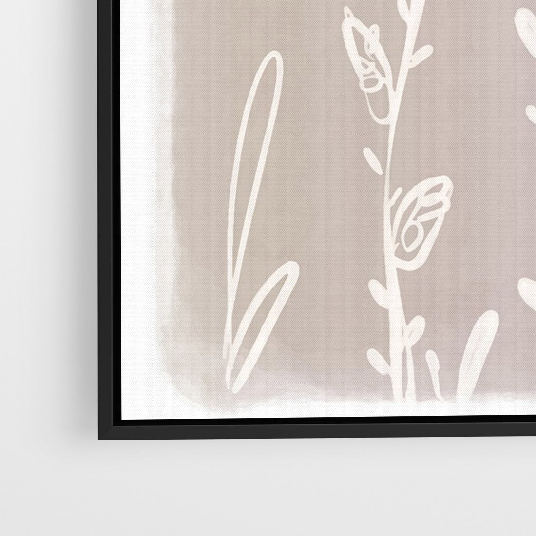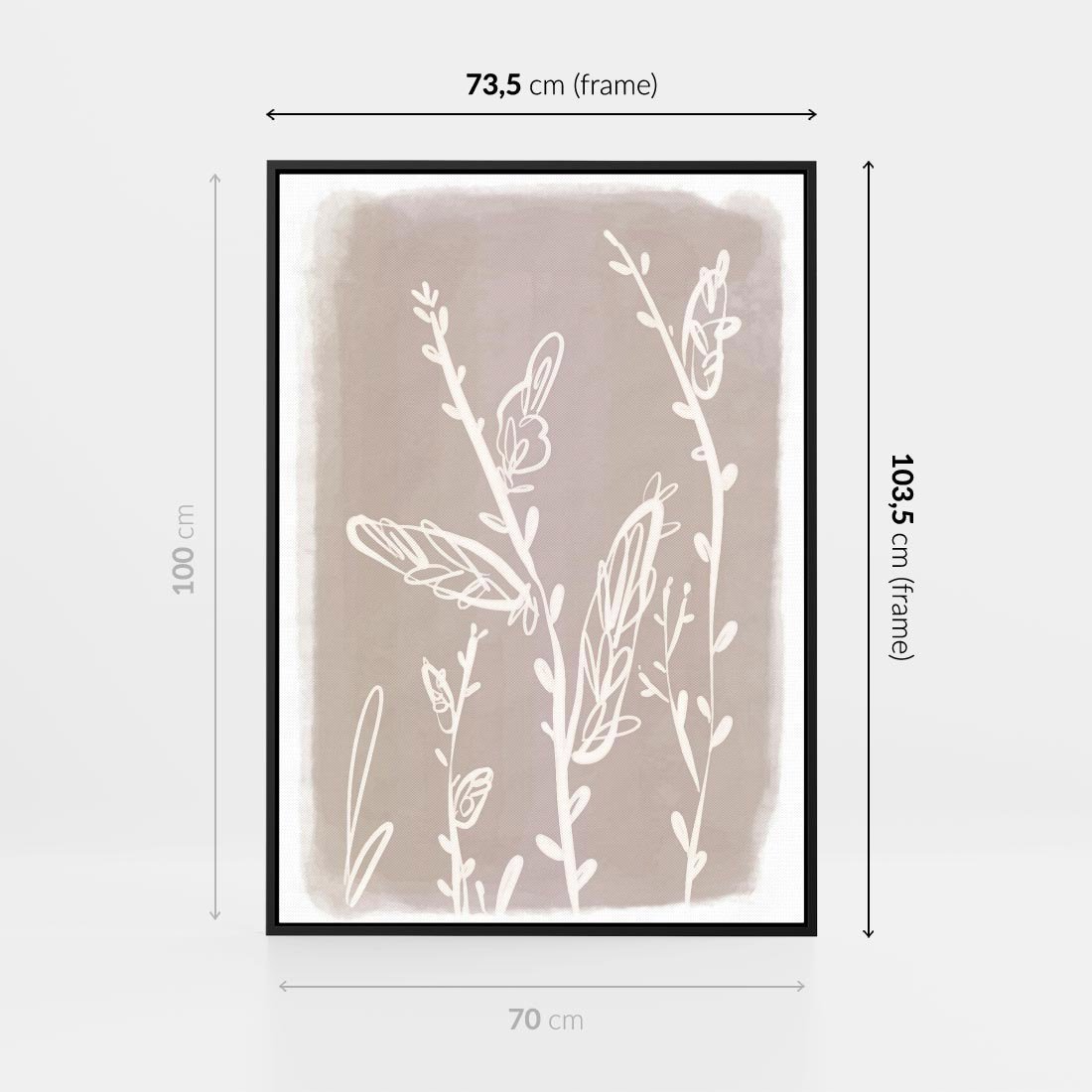 Obraz w ramie 70x100 - Roślinne Przeniknięcia - nowoczesny subtelny plakat, beżowy - rama czarna
