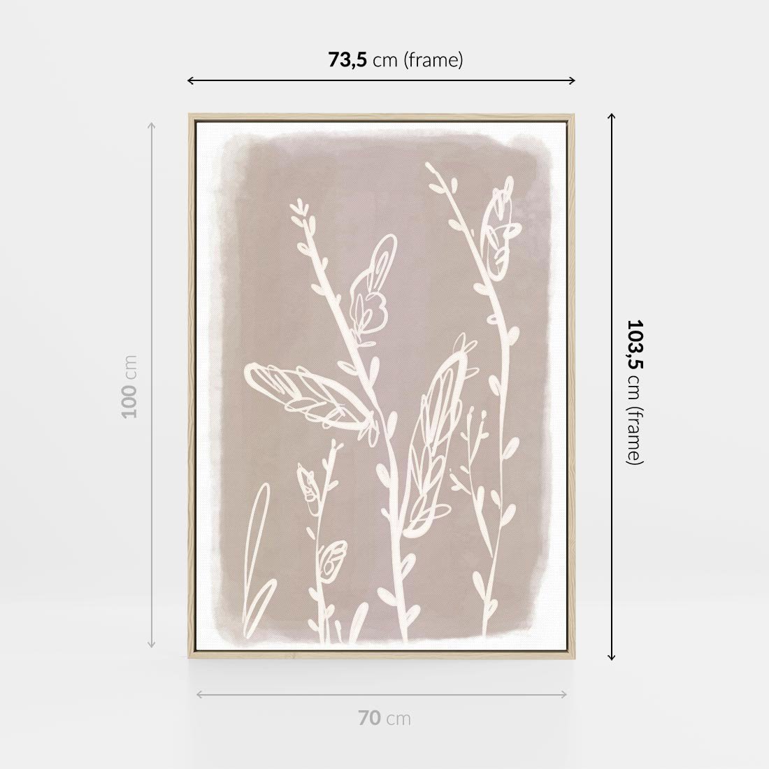 Obraz w ramie 70x100 - Roślinne Przeniknięcia - nowoczesny subtelny plakat, beżowy - rama drewno