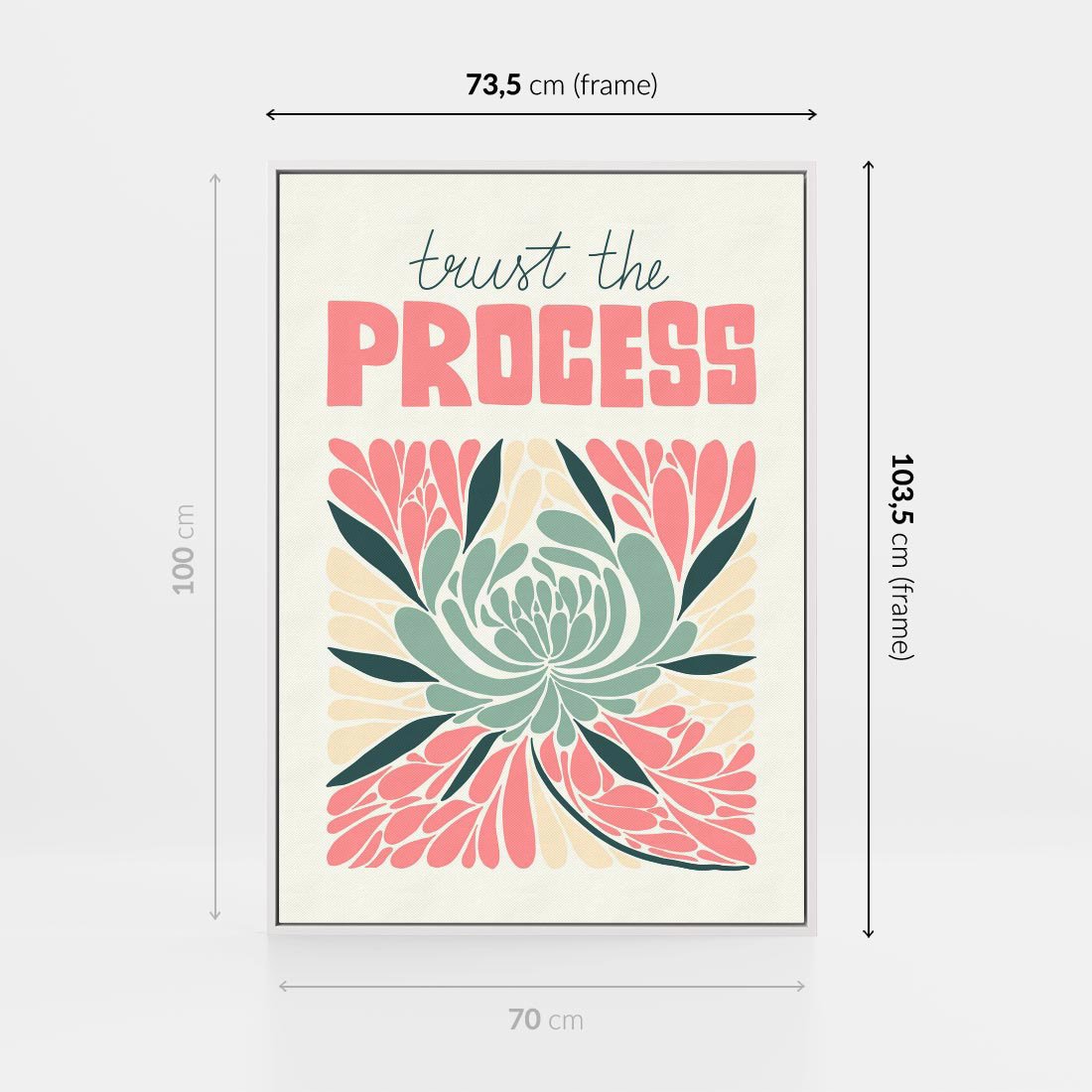 Ta nowoczesna sztuka łączy abstrakcyjny pastelowy kwiat z wyrazistą typografią, tworząc harmonijną kompozycję. Sztuka ta przenosi nas w delikatny świat estetyki, inspirując do refleksji i postrzegania piękna w subtelności.
