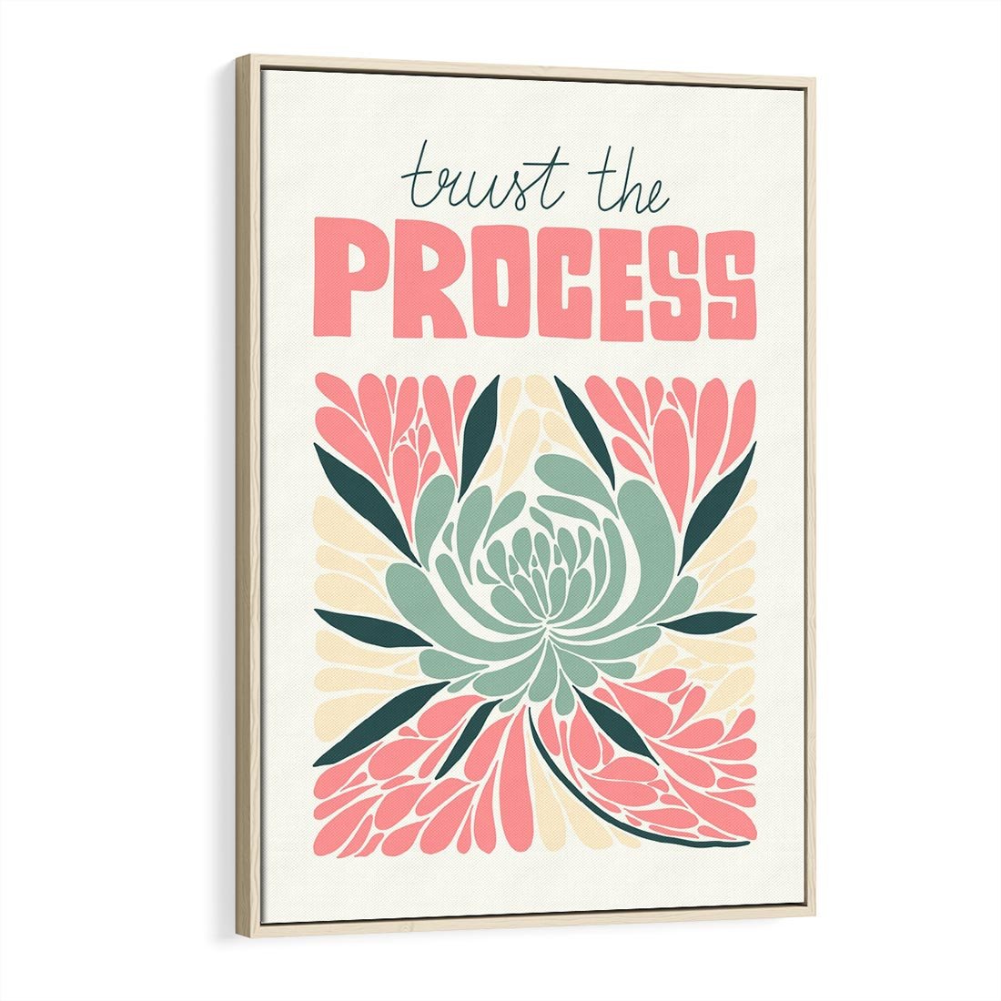 Obraz w ramie 70x100 - Rozbijające Barwy - abstrakcyjny pastelowy kwiat, wyrazista typografia - rama drewno
