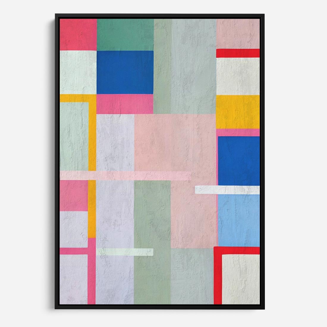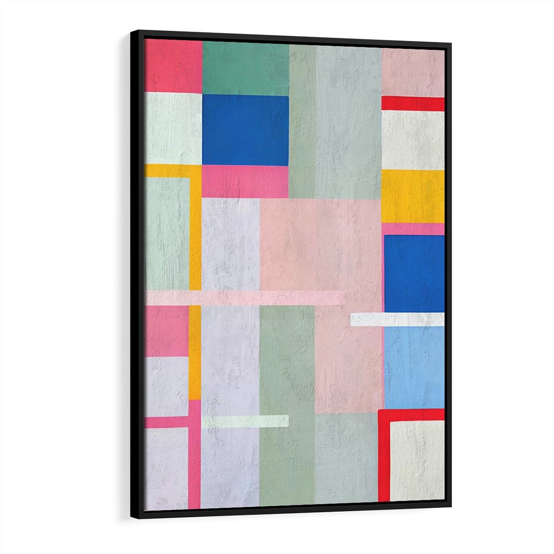Ten olejny obraz to hipnotyzujące połączenie abstrakcyjnych geometrycznych kształtów, które układają się w harmonijną kompozycję. Delikatne pastelowe kolory nadają mu subtelności i elegancji, tworząc wyjątkowy nastrój. Prostokąty i kwadraty splatają się, tworząc unikalny ruch i dynamikę. To dzieło sztuki zachwyca swoją subtelnością i oryginalnością, idealne do ozdobienia wnętrza w nowoczesnym stylu.