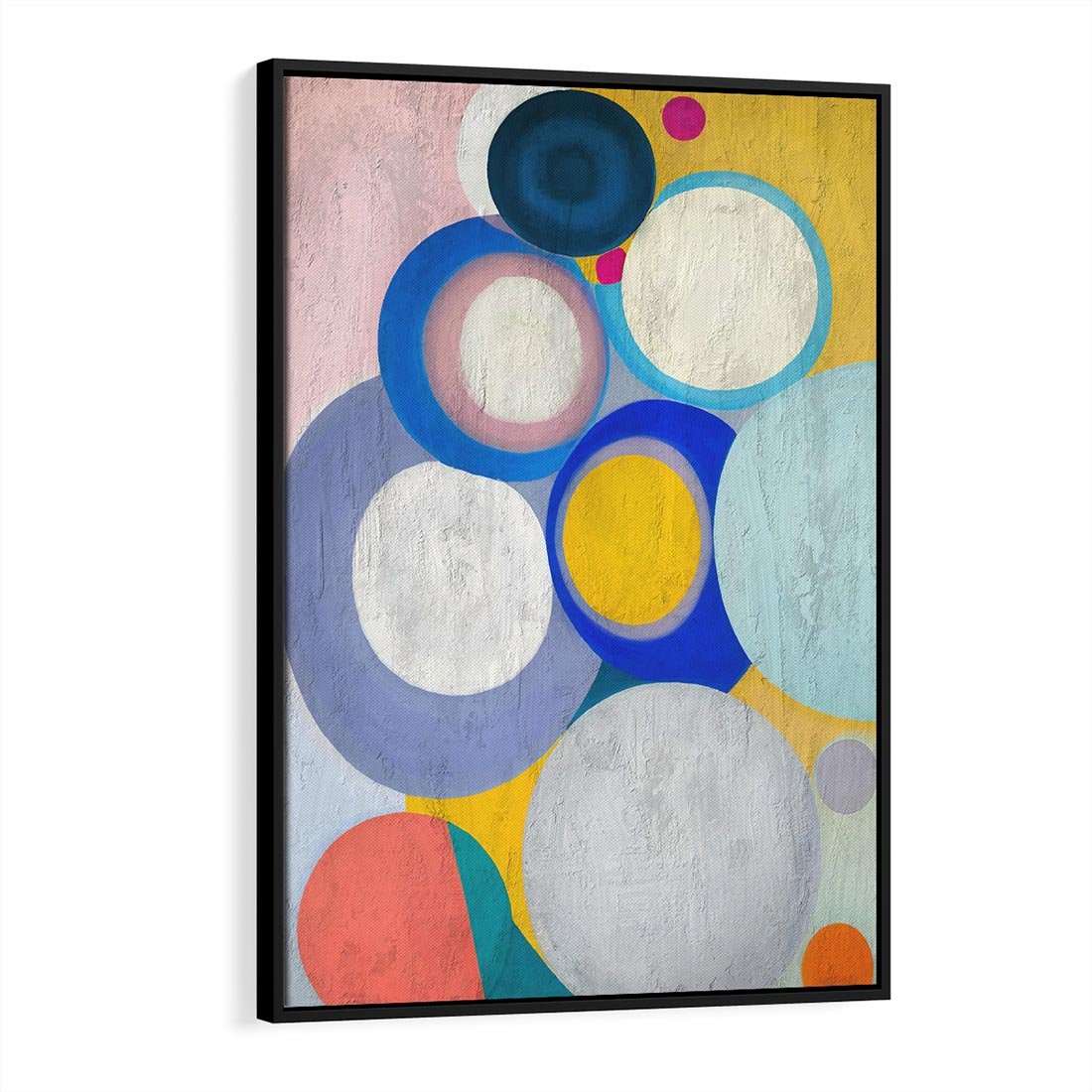 Ten olejny obraz to dynamiczna kompozycja abstrakcyjnych geometrycznych kształtów, wzbogacona o intensywne i żywe kolory. Koła w różnych rozmiarach tworzą ciekawą grę form i perspektyw, nadając dziełu energii i głębokości. To unikalne dzieło sztuki, które wzbogaci każdą przestrzeń i wciągnie w fascynujący świat abstrakcji.