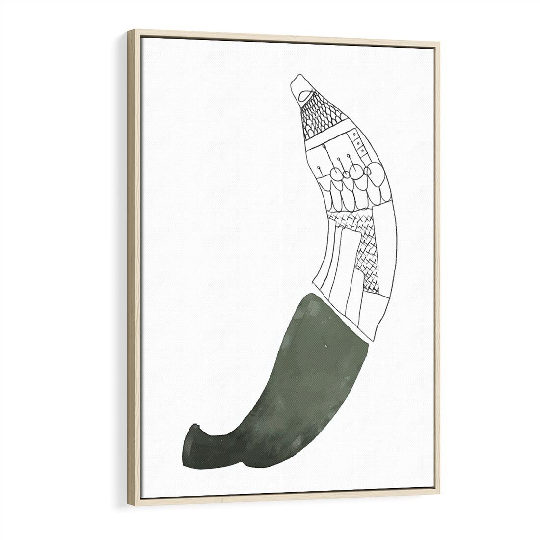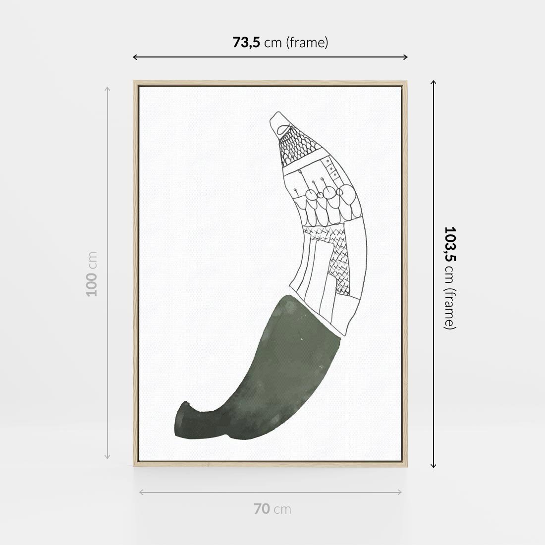 Ten minimalistyczny plakat przedstawia abstrakcyjną interpretację banana w stonowanej, zgaszonej zieleni. To dzieło sztuki łączy w sobie minimalizm z abstrakcją, tworząc subtelny i nowoczesny efekt. Jest to doskonały wybór dla osób, które cenią sobie prostotę, elegancję oraz chcą dodać swojej przestrzeni delikatny, lecz wyrafinowany akcent.