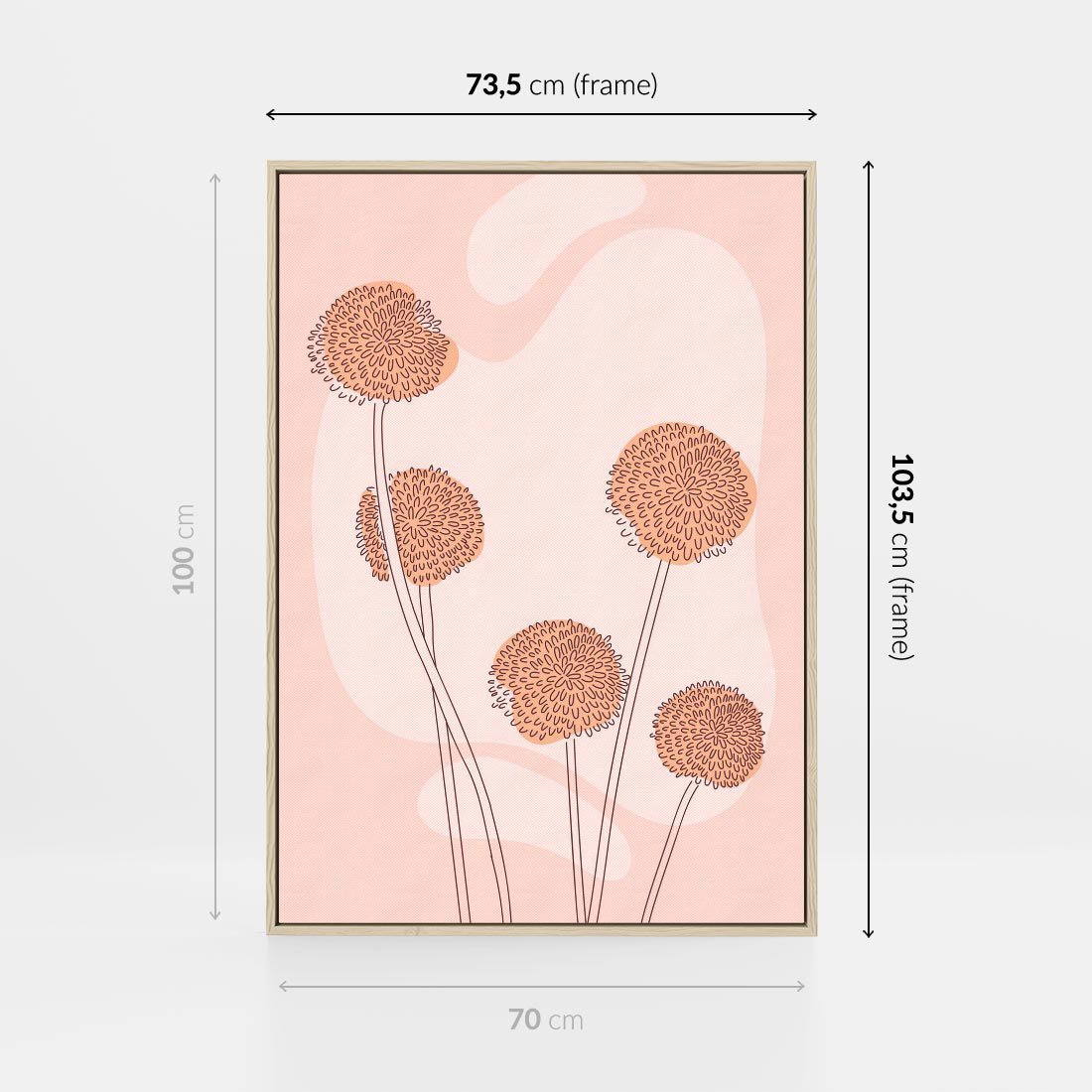 Obraz w ramie 70x100 - Rozkwitające Emocje - minimalistyczny plakat, pudrowe kwiaty - rama drewno