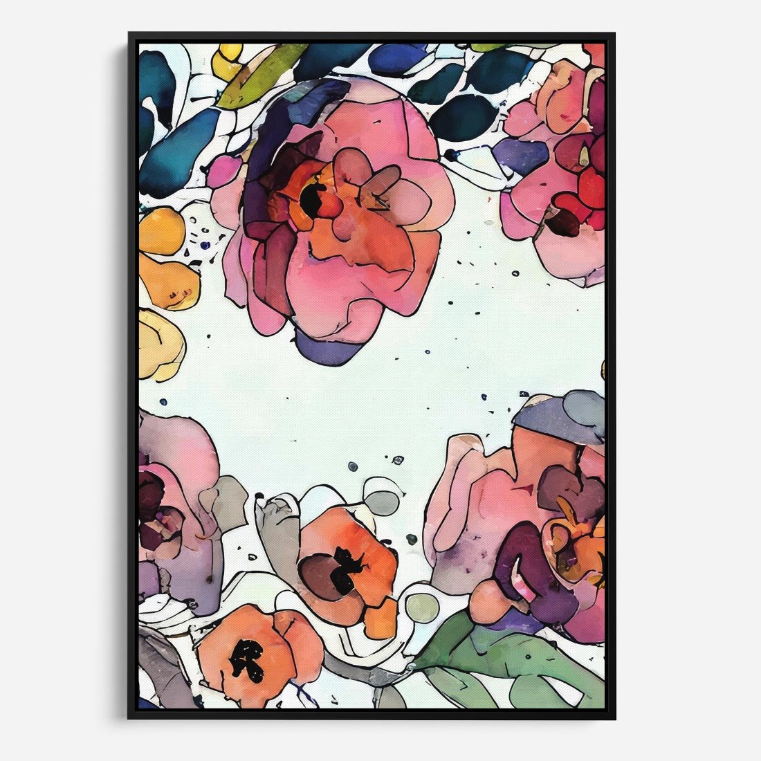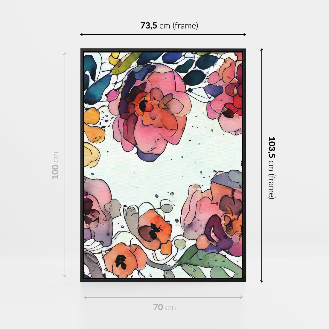 Obraz w ramie 70x100 - Rozkwitające marzenia - akwarelowe kwiaty, kolory - rama czarna