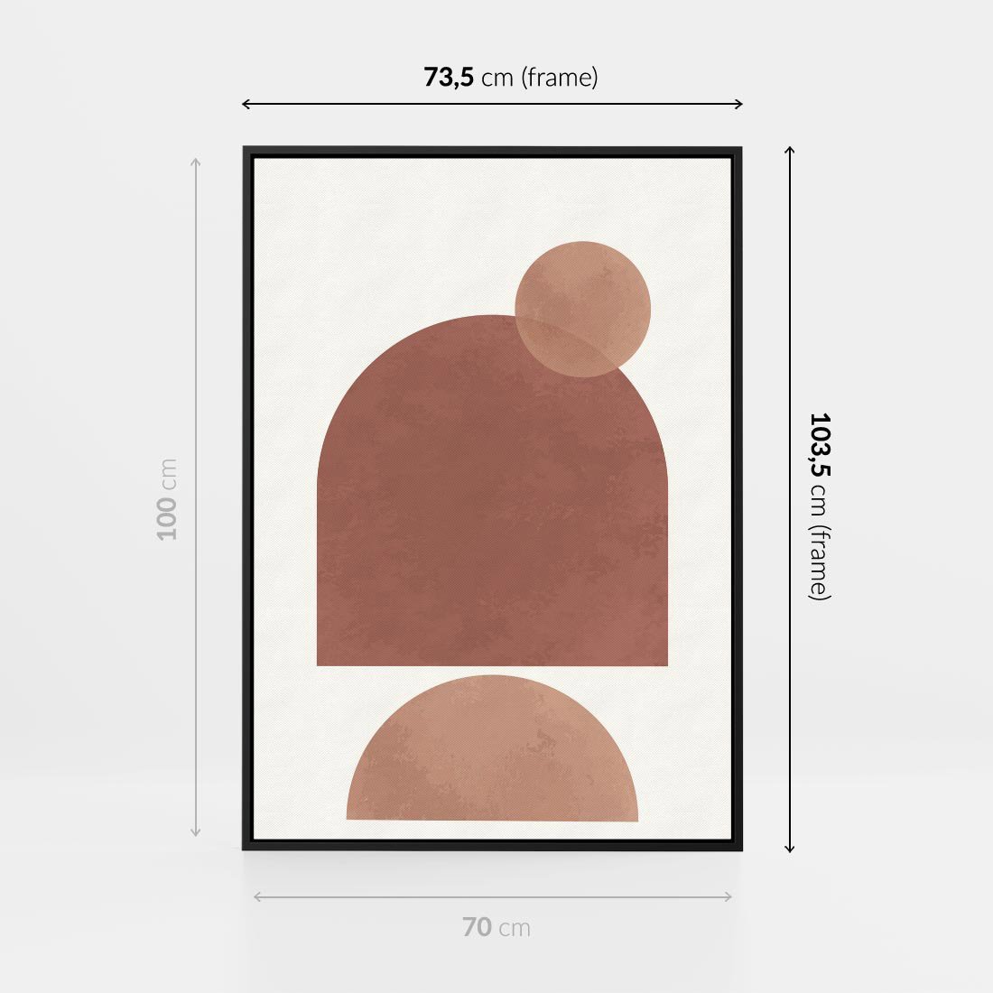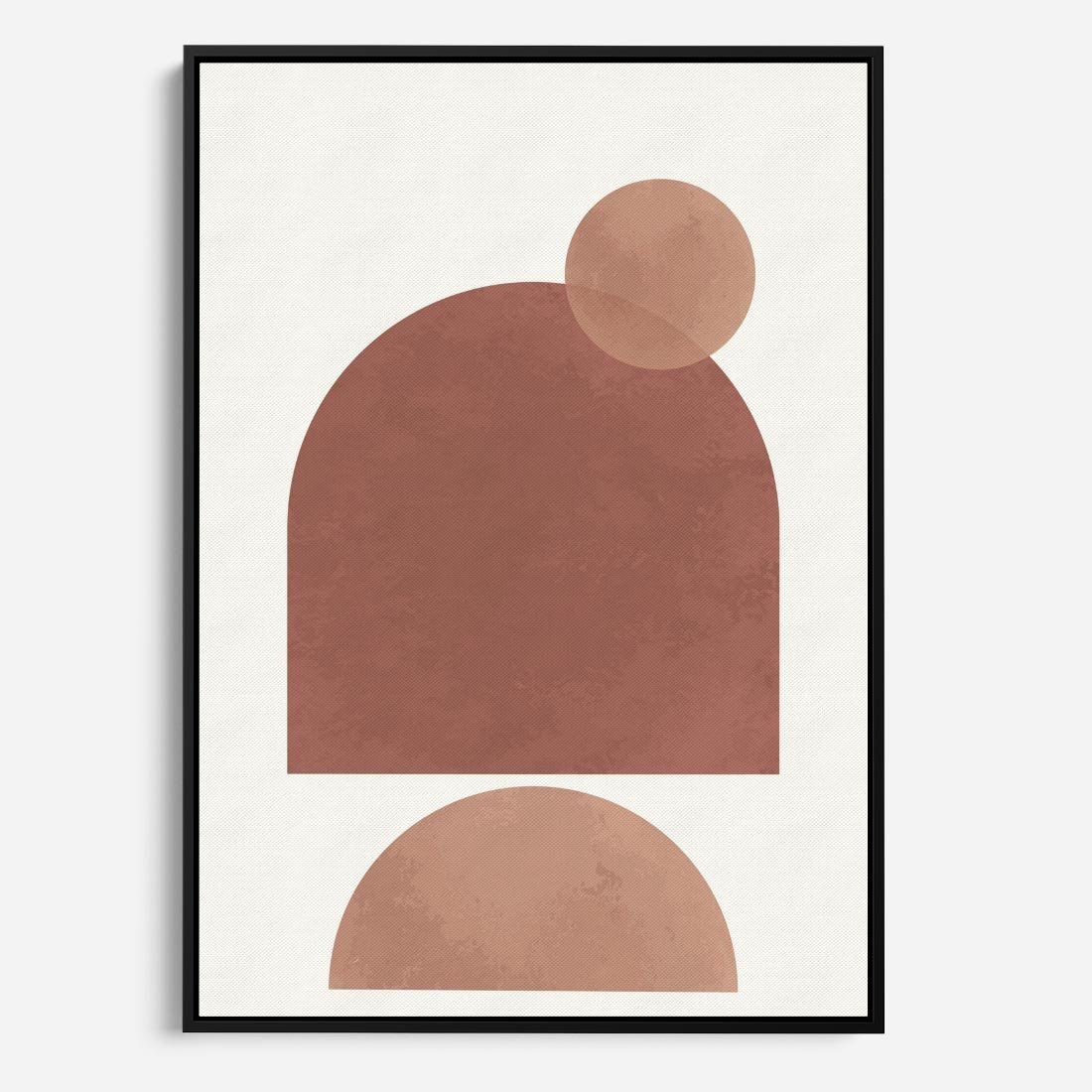 Ten plakat prezentuje abstrakcyjne, geometryczne kształty w odcieniach brązu i beżu, doskonale łącząc minimalizm z boho stylem. Idealny do nowoczesnych wnętrz.