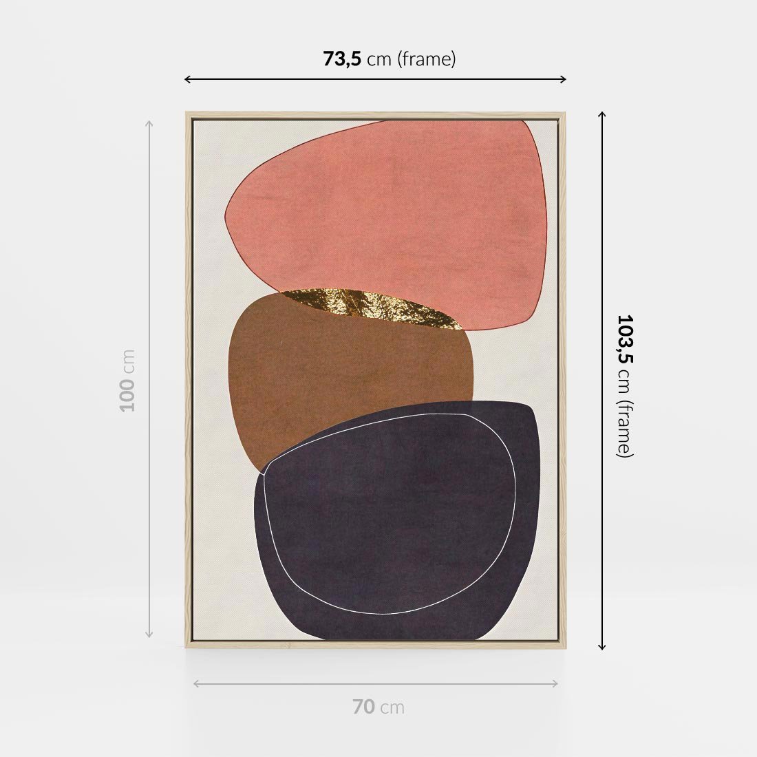 Ten abstrakcyjny obraz zachwyca geometrycznymi formami i subtelnie wplecionymi złotymi elementami. Jego zrównoważona kompozycja łączy się z nowoczesnym stylem, tworząc unikatowe dzieło sztuki, które ożywi każde wnętrze.