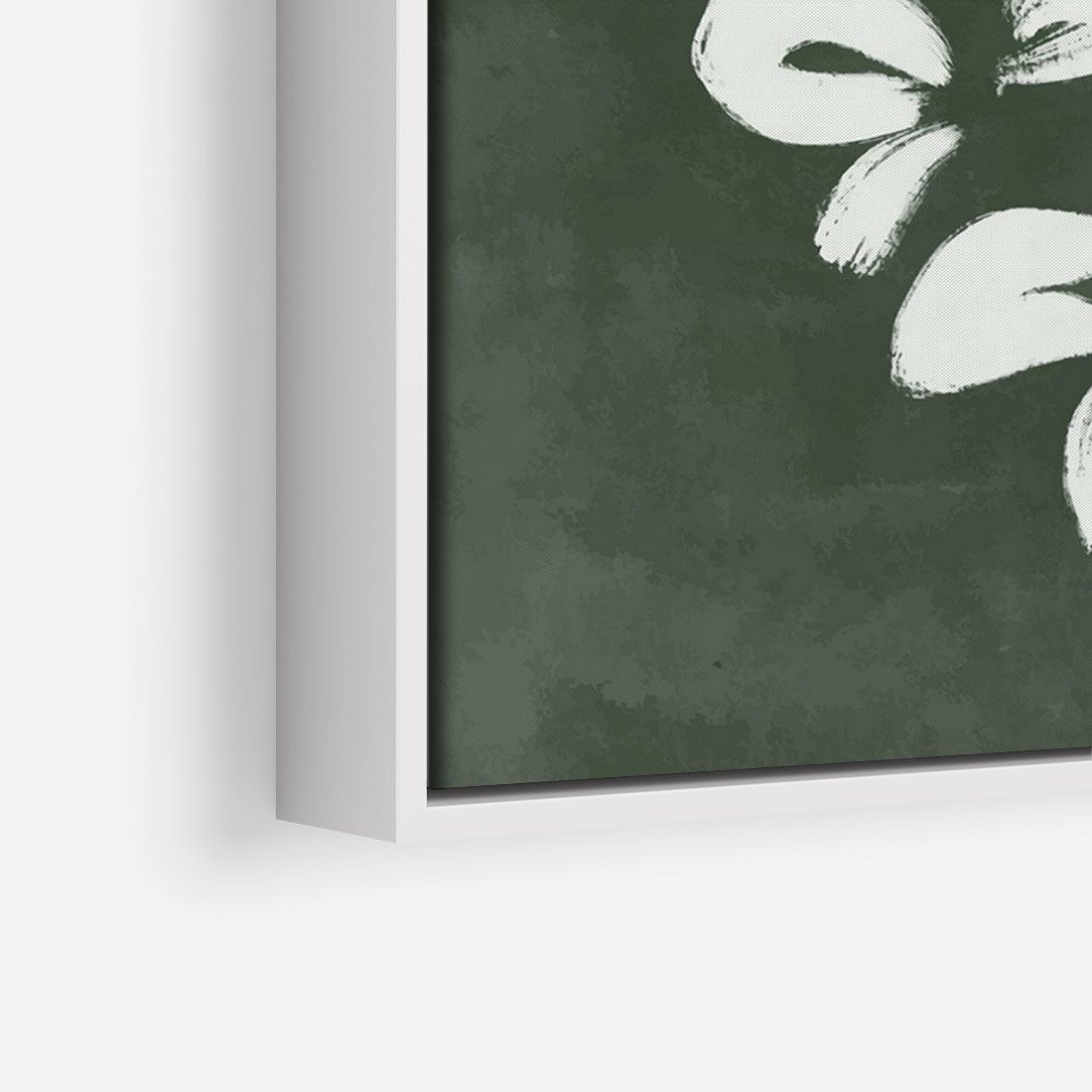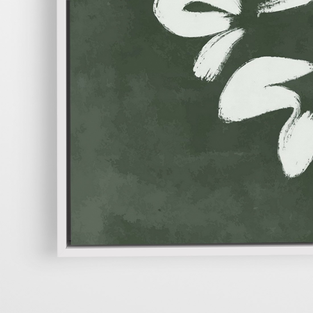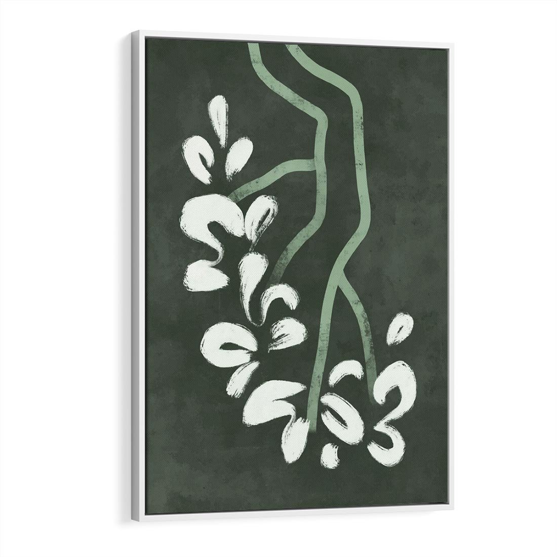 Obraz w ramie 70x100 - Rozkwitające Zielone Gałęzie - abstrakcyjne delikatne zielone linie, podobne do gałęzi kwiatów - rama biała