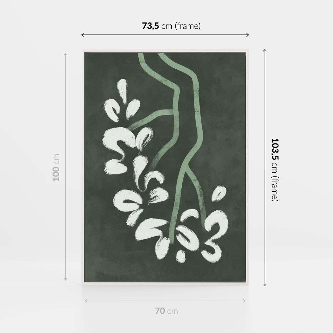 Ten nowoczesny plakat ukazuje abstrakcyjne, delikatne zielone linie przypominające gałęzie kwiatów. To wyjątkowe połączenie natury i nowoczesnej estetyki wprowadza do Twojej przestrzeni subtelność i oryginalność, tworząc jednocześnie interesujący akcent artystyczny.
