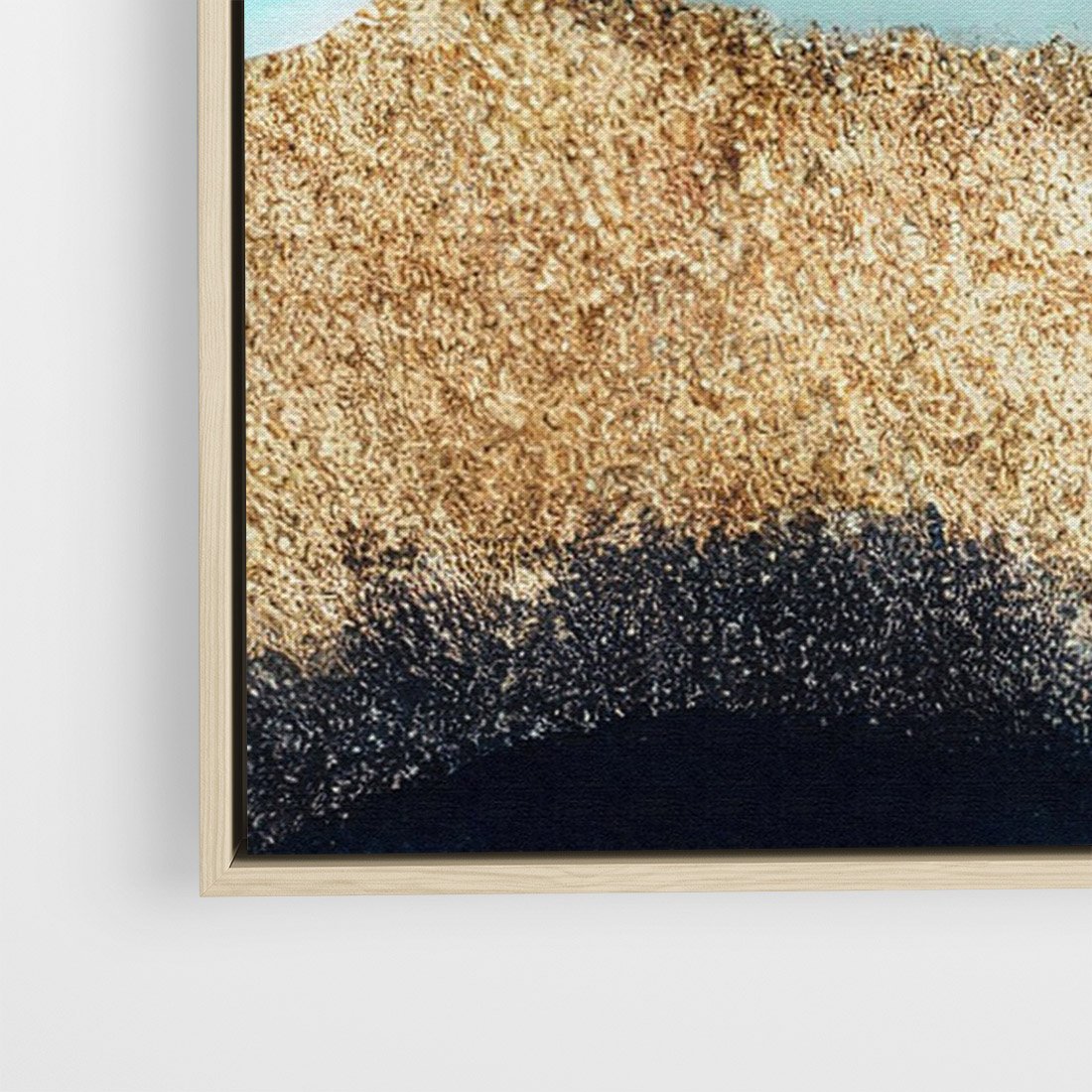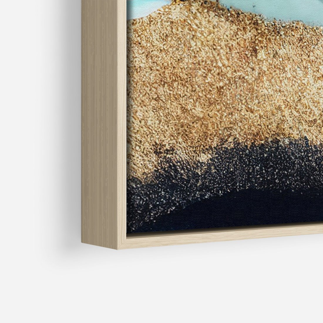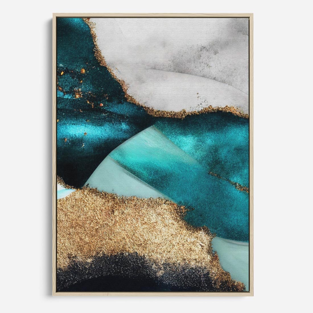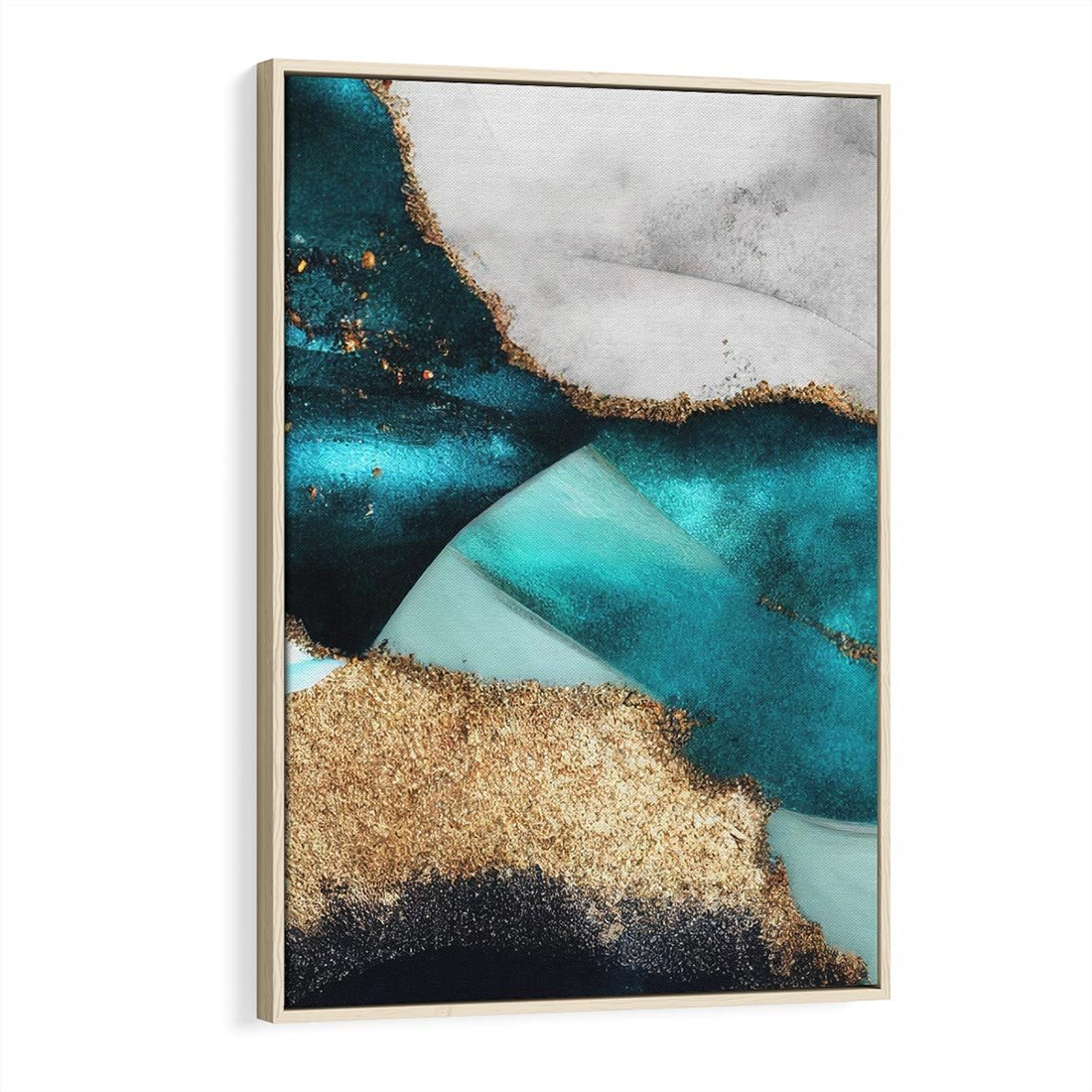 Obraz w ramie 70x100 - Rozlane Turkusy - Turkusowe plamy, złote elementy - rama drewno