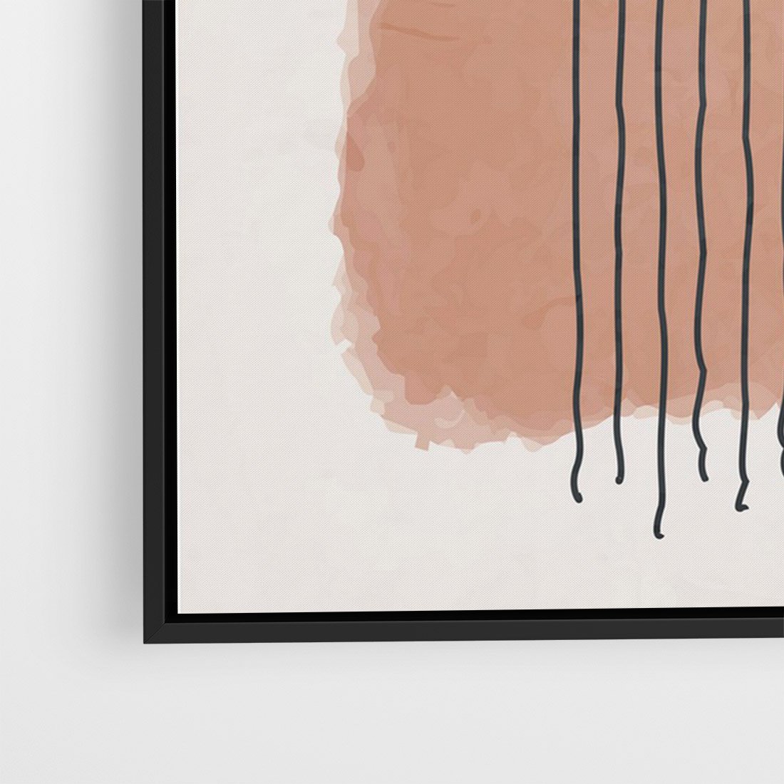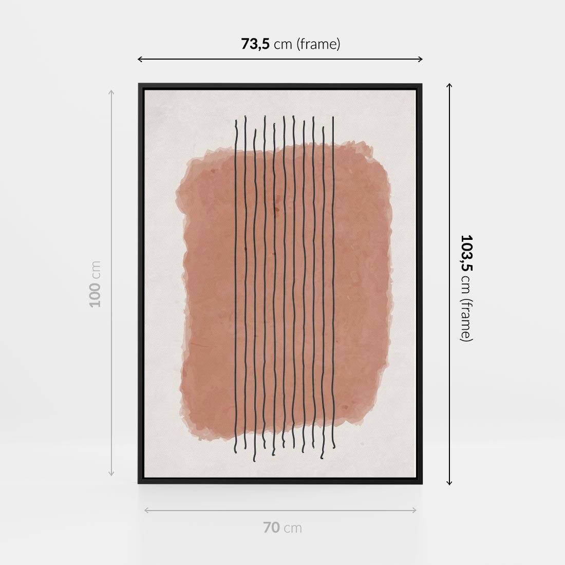 Abstrakcyjna akwarelowa plama ożywia ten minimalistyczny obraz nieregularnymi kreskami i subtelnie ułożonymi liniami, tworząc unikalną harmonię sztuki.