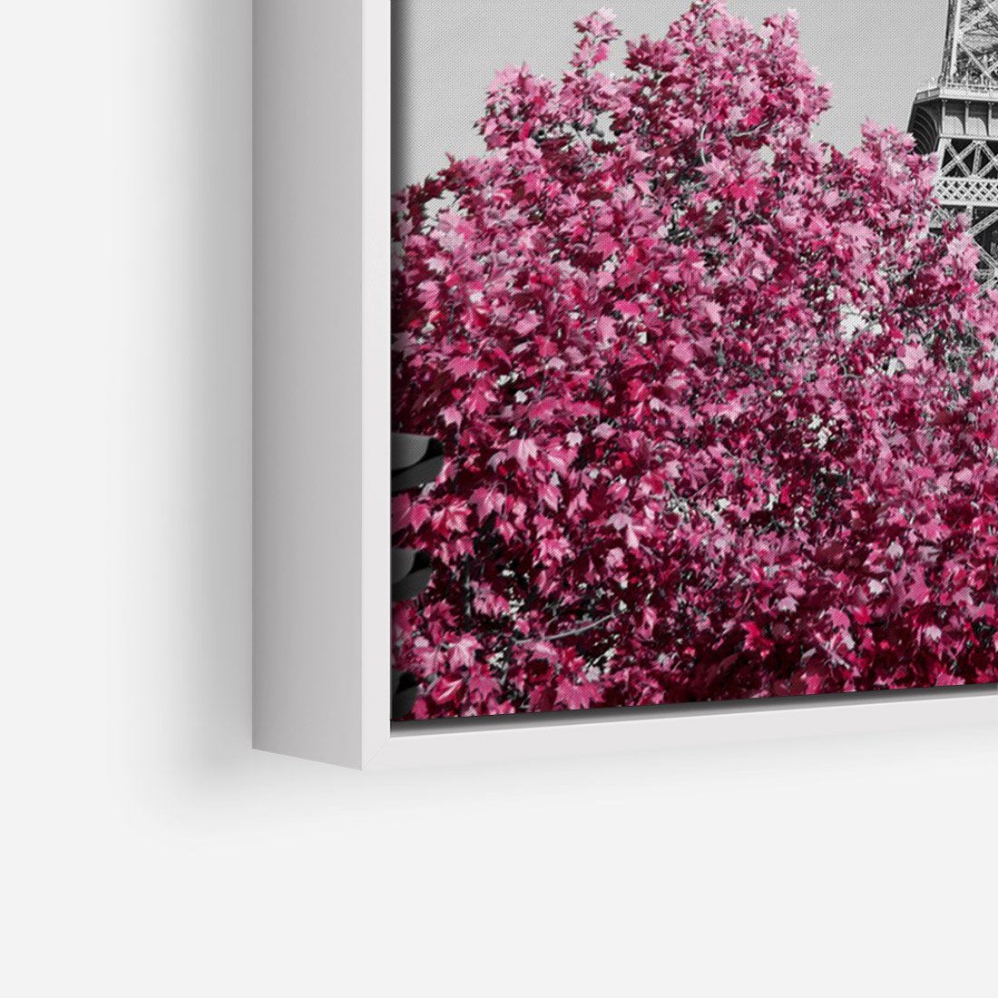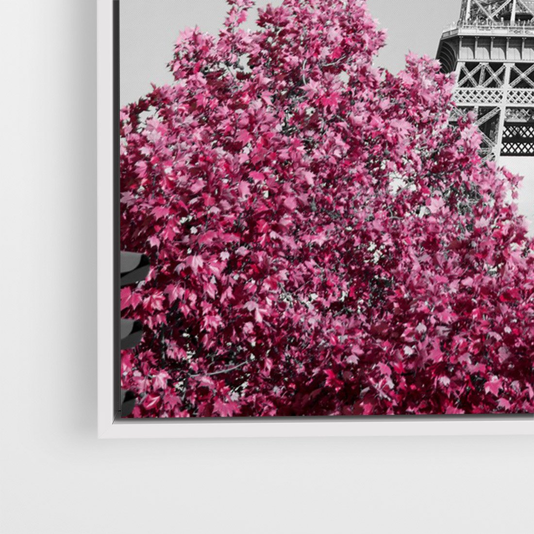 Obraz w ramie 70x100 - Różowy Paryż - czarno białe zdjęcie, wieża eiffla - rama biała