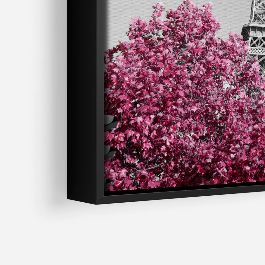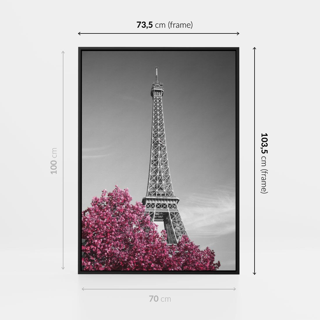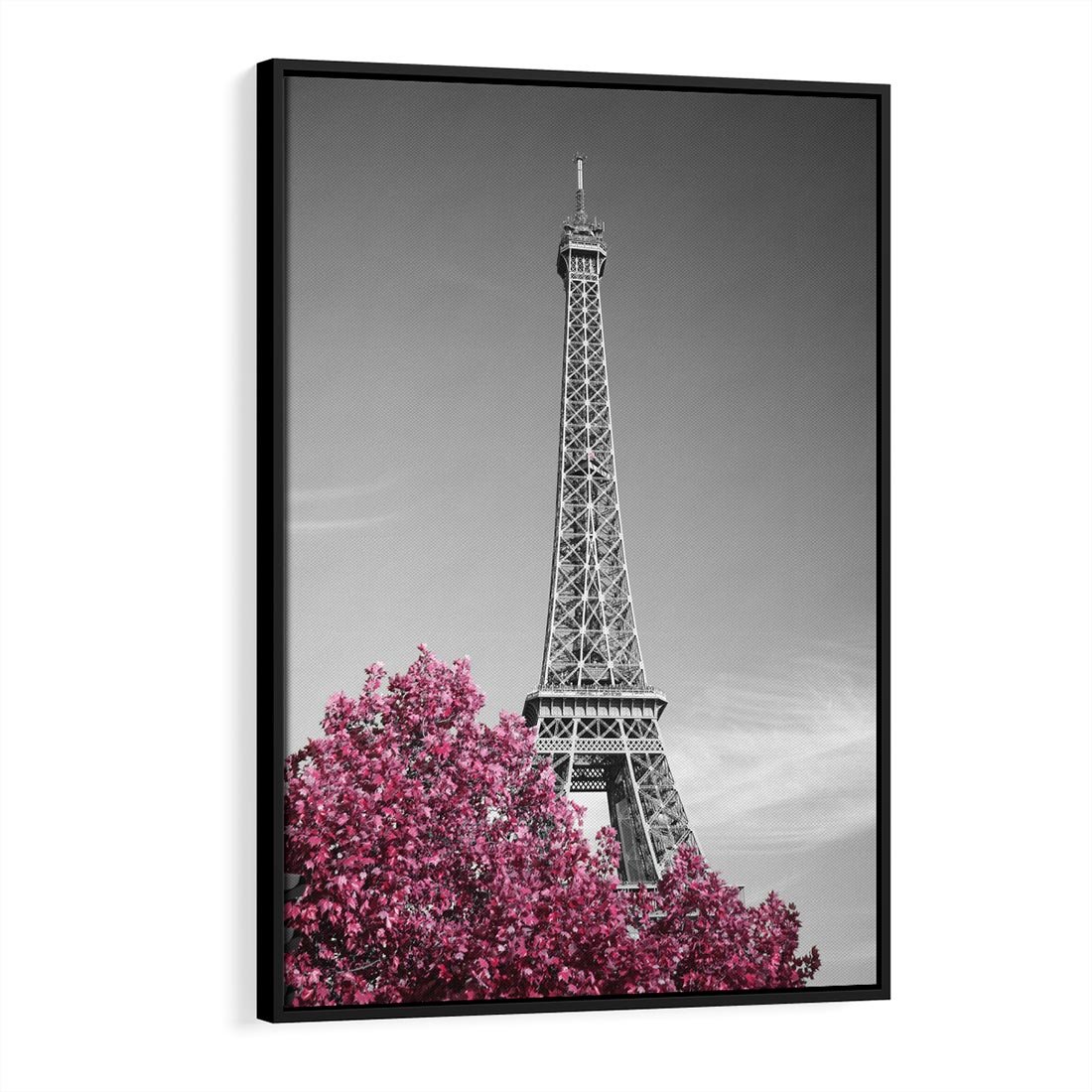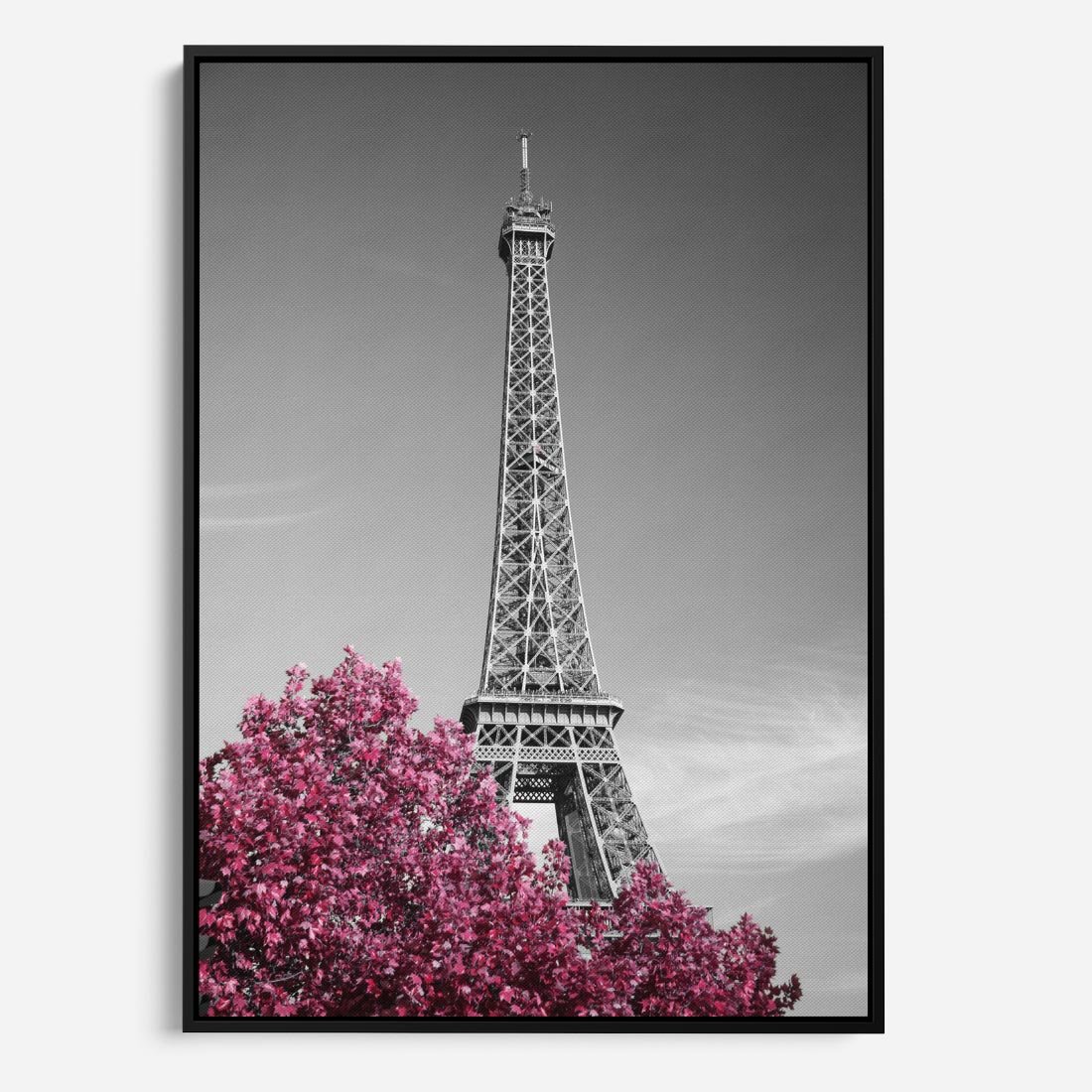 Obraz w ramie 70x100 - Różowy Paryż - czarno białe zdjęcie, wieża eiffla - rama czarna