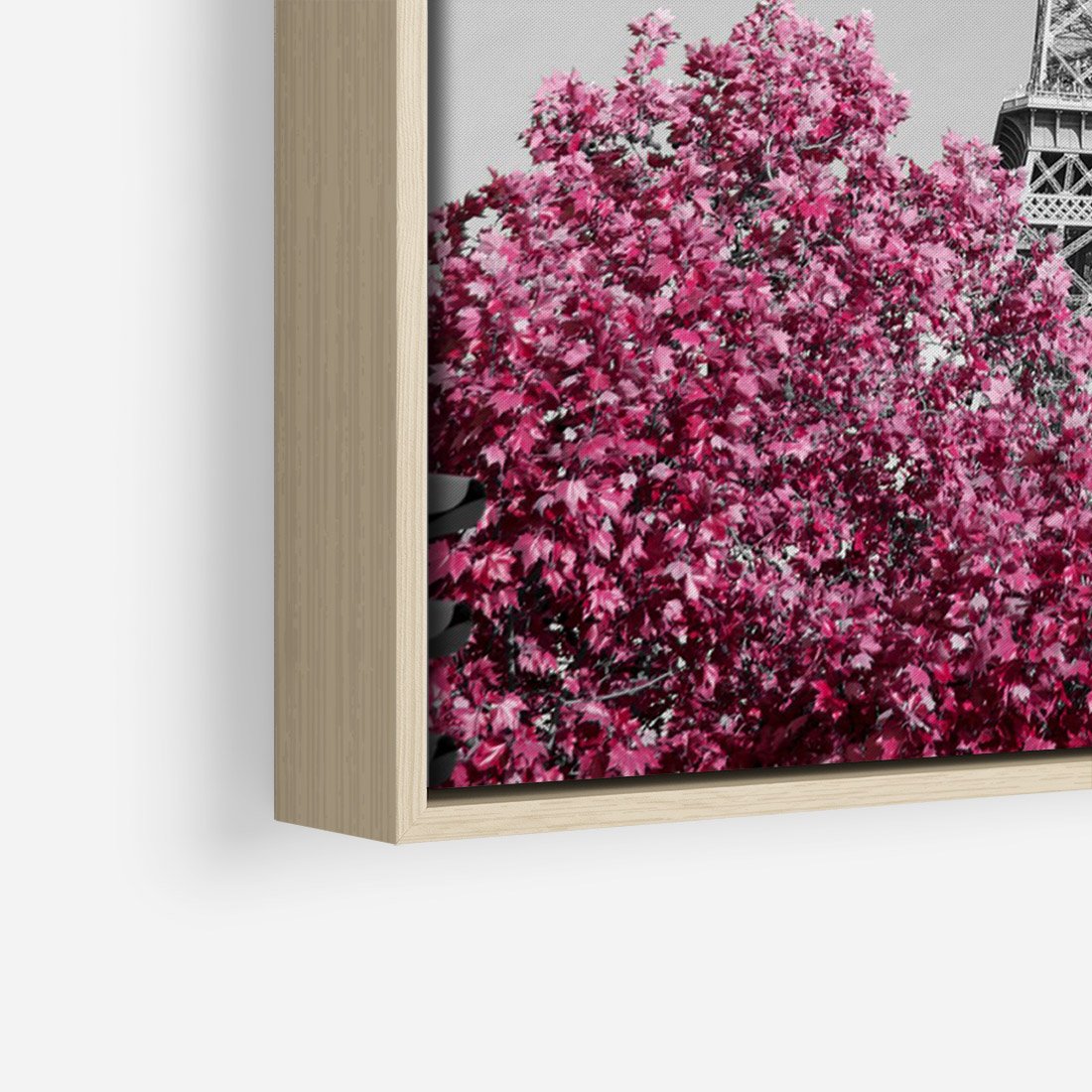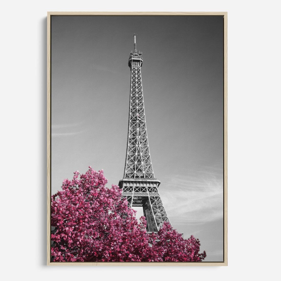 Obraz w ramie 70x100 - Różowy Paryż - czarno białe zdjęcie, wieża eiffla - rama drewno