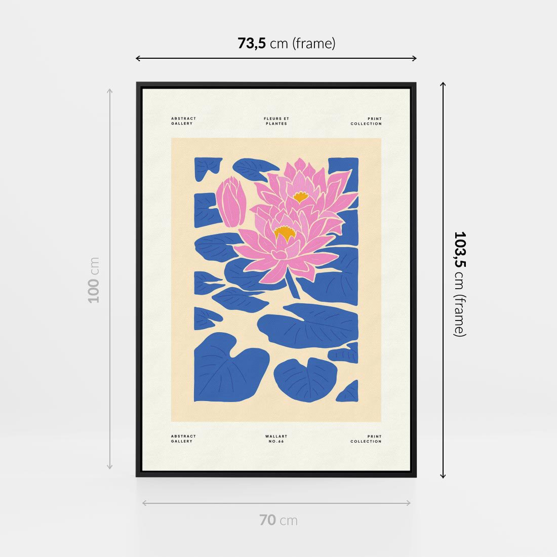 Ten nowoczesny plakat ukazuje pastelowe lilie wodne w odcieniach błękitu i różu, tworząc spokojny i oniryczny obraz. Sztuka ta jest idealnym dodatkiem do sypialni, tworząc atmosferę sennej harmonii i piękna natury.