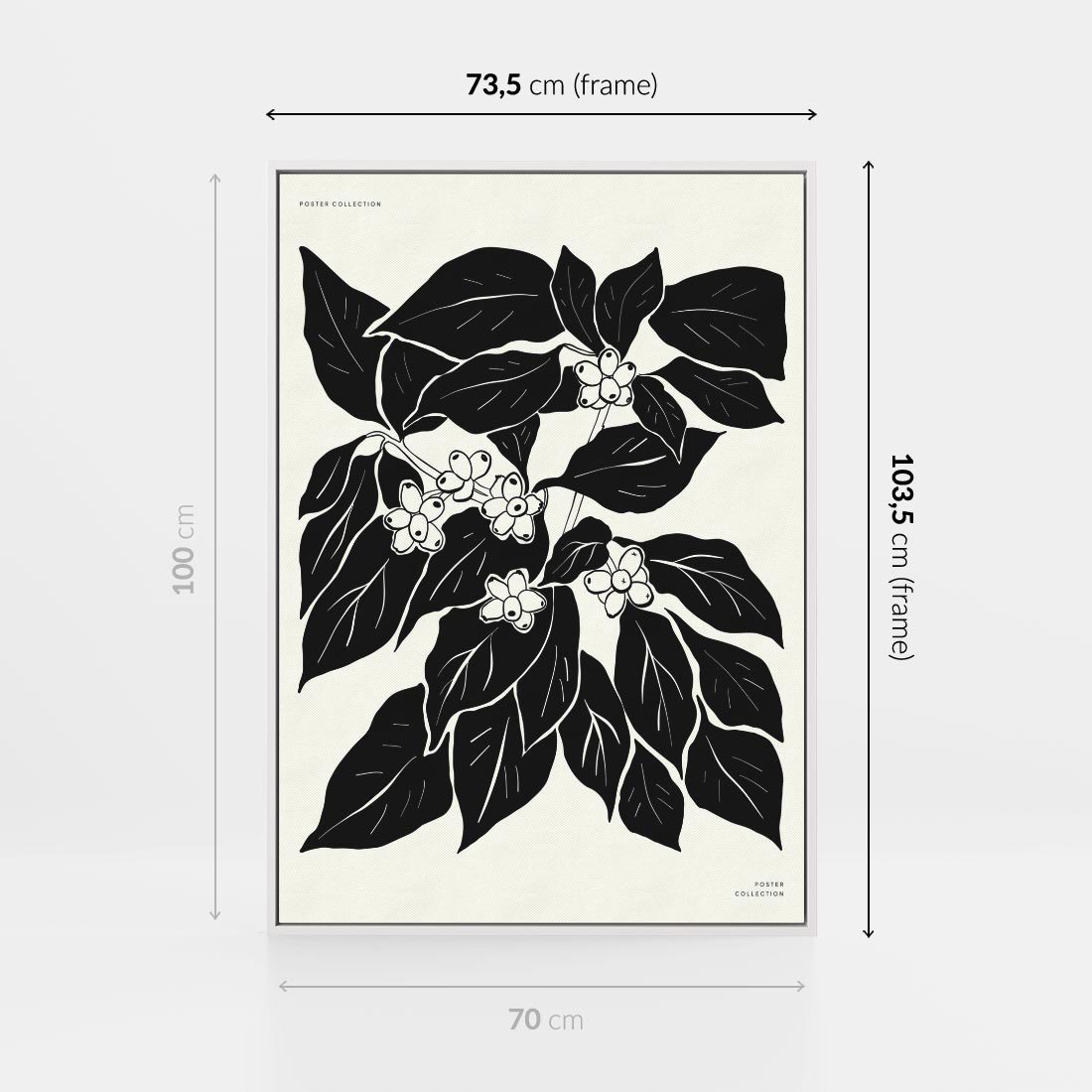 Odkryj urok natury w tej czarno-białej grafice. Liście i roślinne motywy tworzą minimalistyczną formę, oddając piękno roślinności w prostym stylu. Ten obraz doskonale wpisuje się w estetykę minimalizmu, wnosząc do wnętrza delikatny akcent przyrody i spokoju.