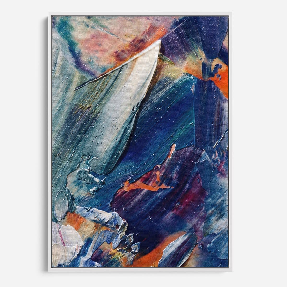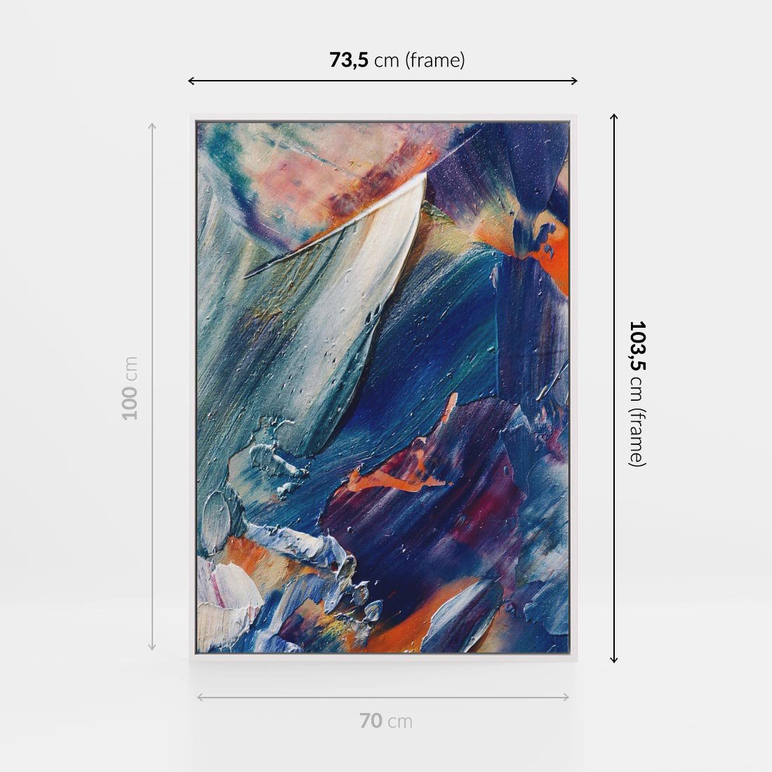 Obraz w ramie 70x100 - Rytmy ukrytych pragnień - chaos i abstrakcja, plamy koloru - rama biała