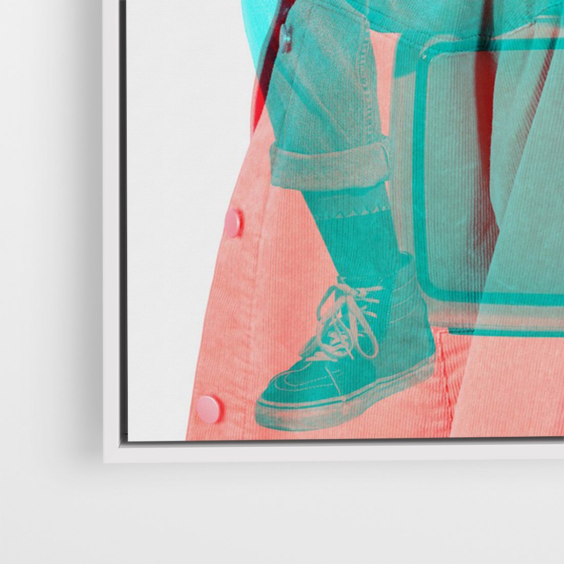 Abstrakcyjny kolaż przedstawiający kobietę w słuchawkach ukazuje fascynujący świat dźwięków i muzyki. To dzieło sztuki oddaje hołd stylowi retro, łącząc barwne zdjęcia w unikalną kompozycję, która ożywa wspomnienia i tworzy nowe emocje.