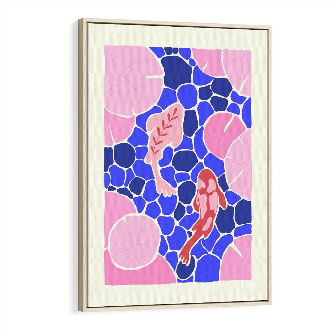 Obraz w ramie 70x100 - Rzeka Abstrakcji - abstrakcyjna kompozycja, różowe ryby wśród rafy - rama drewno