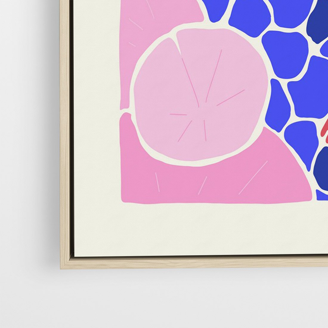 Ta wyjątkowa abstrakcja przenosi cię pod wodę, gdzie różowe ryby tańczą wśród kolorowej rafy. Odcienie różu i kobaltu tworzą magiczną atmosferę, która zachwyci Twoje zmysły.