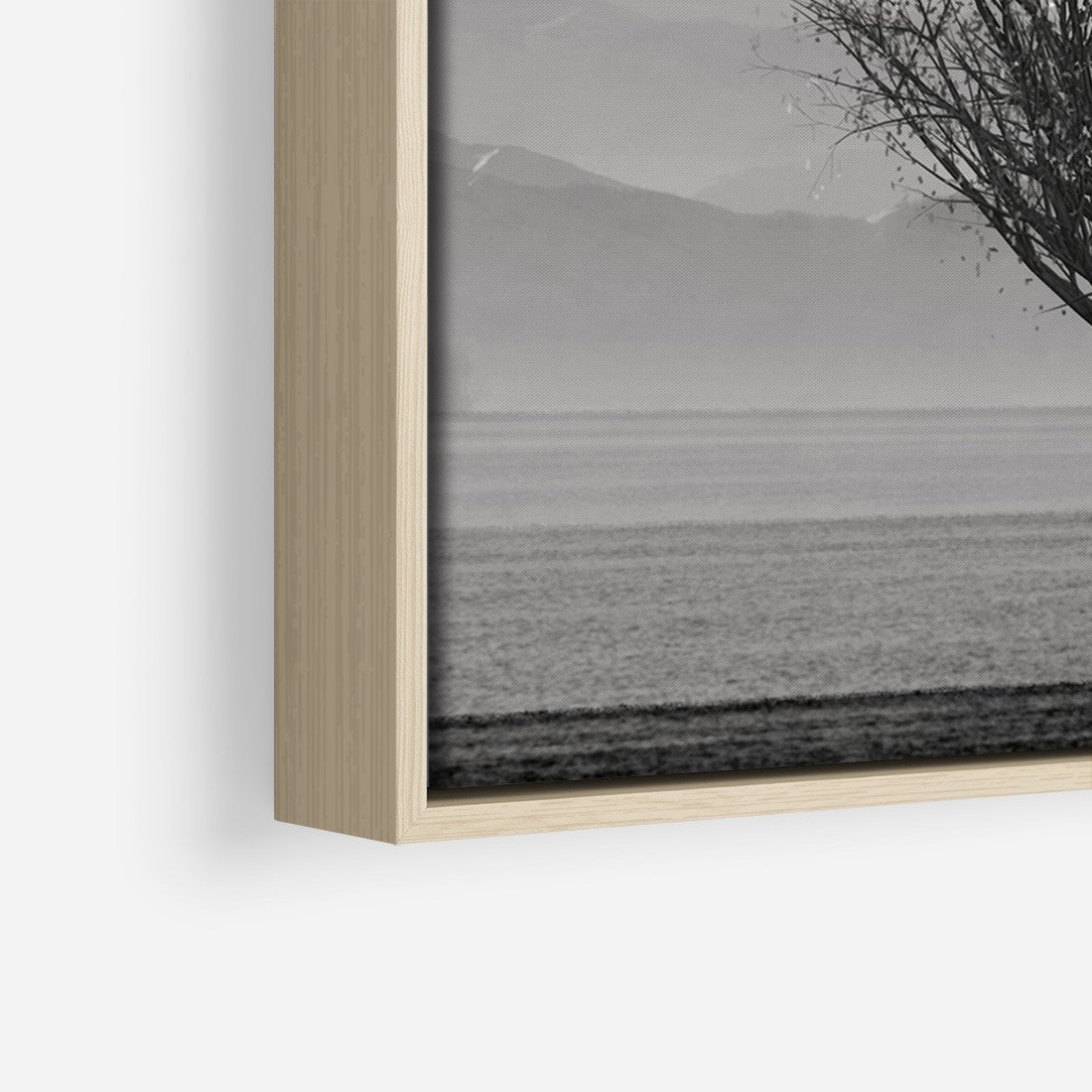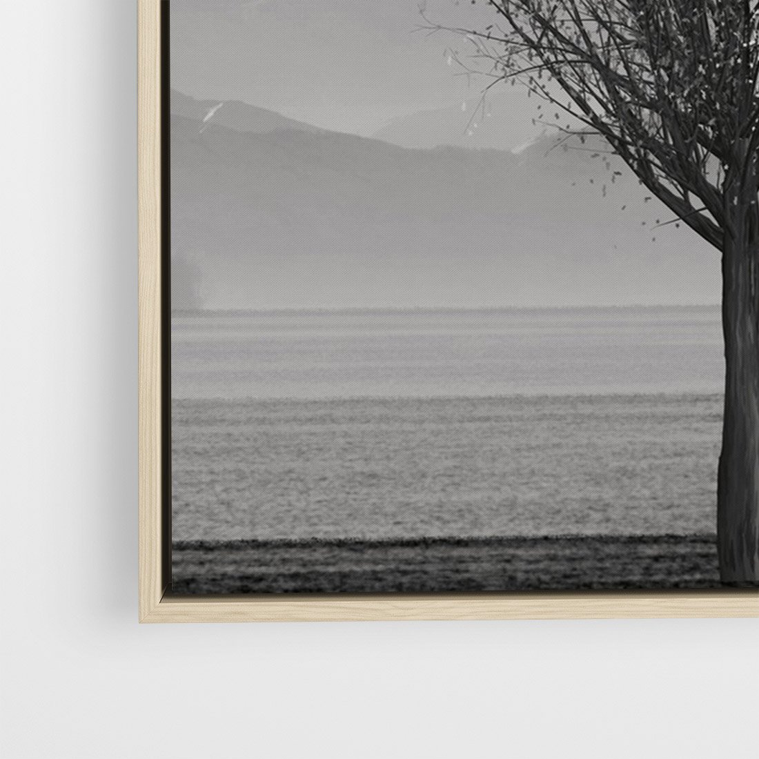 Obraz w ramie 70x100 - Samotne Drzewo - samotne drzewo w polu, czarno białe zdjęcie - rama drewno