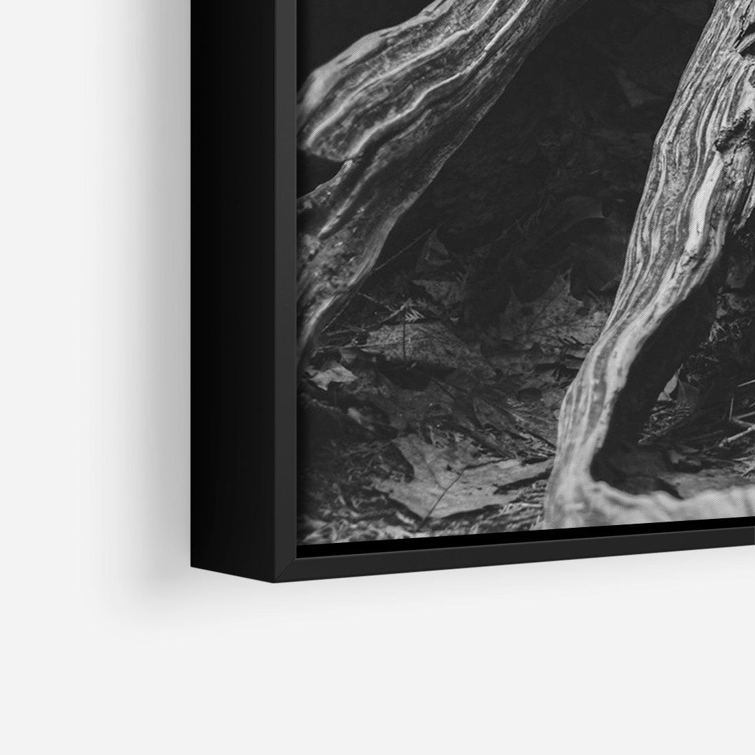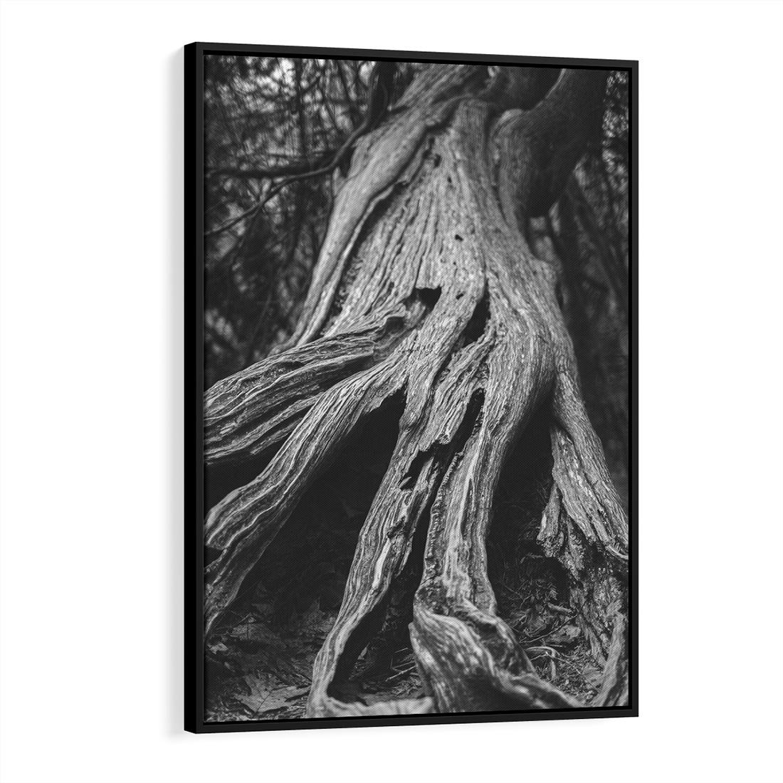 Obraz w ramie 70x100 - Siła Natury - czarno biała fotografia, korzenie wielkiego drzewa - rama czarna