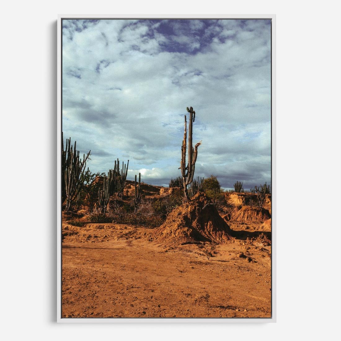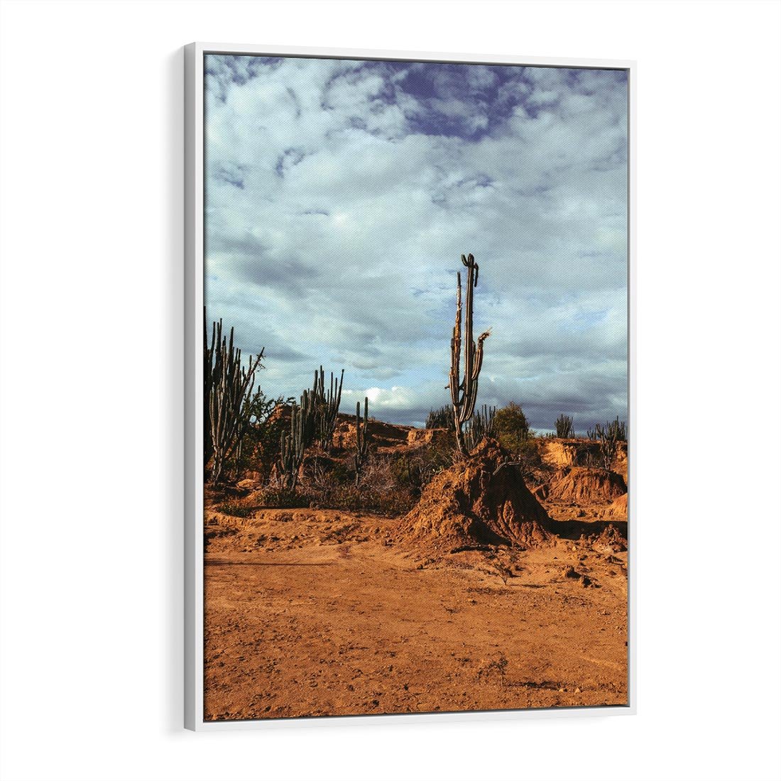 Obraz w ramie 70x100 - Skarby Pustynnego Kanionu - pustynia, kaktusy - rama biała
