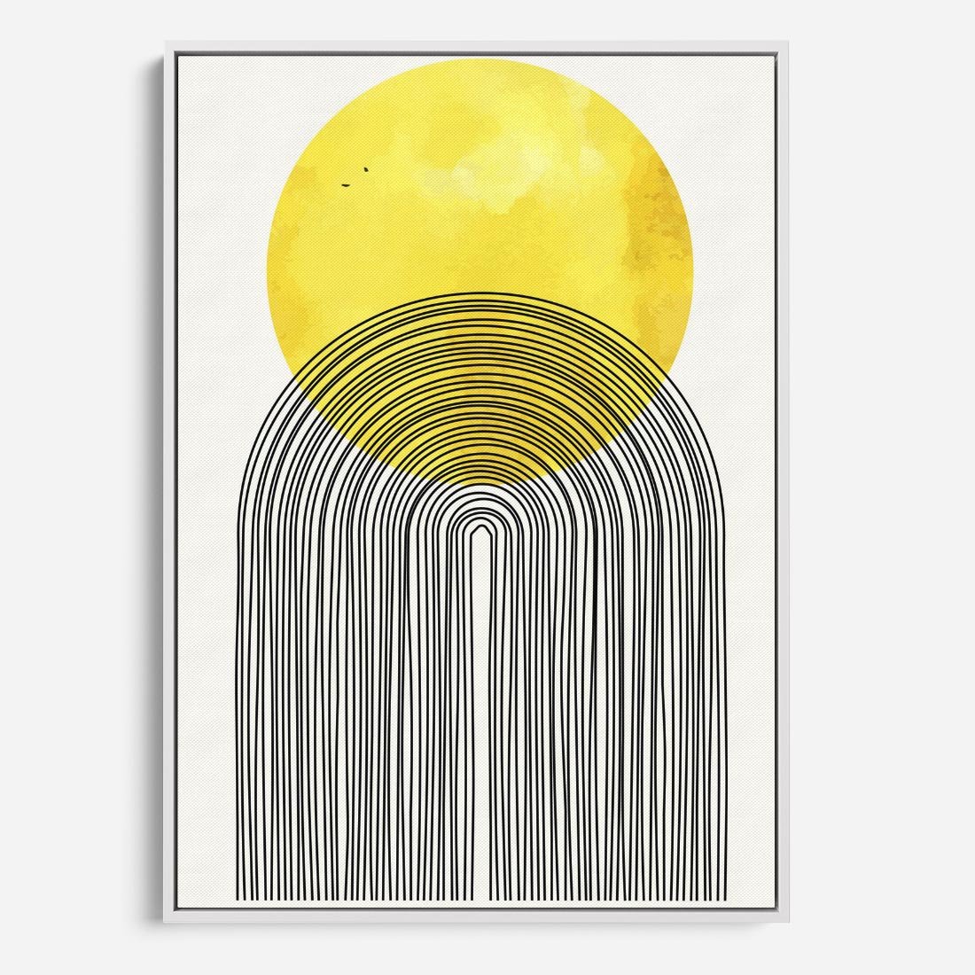 Obraz w ramie 70x100 - Słoneczne Odbicia - geometria, żółte koło - rama biała