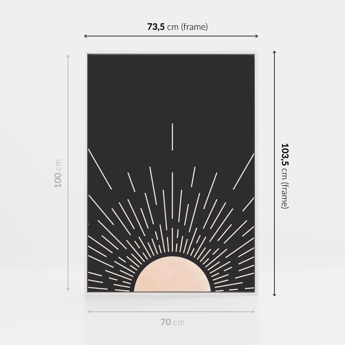 Obraz w ramie 70x100 - Słoneczny Portret Duszy - boho czarne słońce, nowoczesna grafika - rama biała