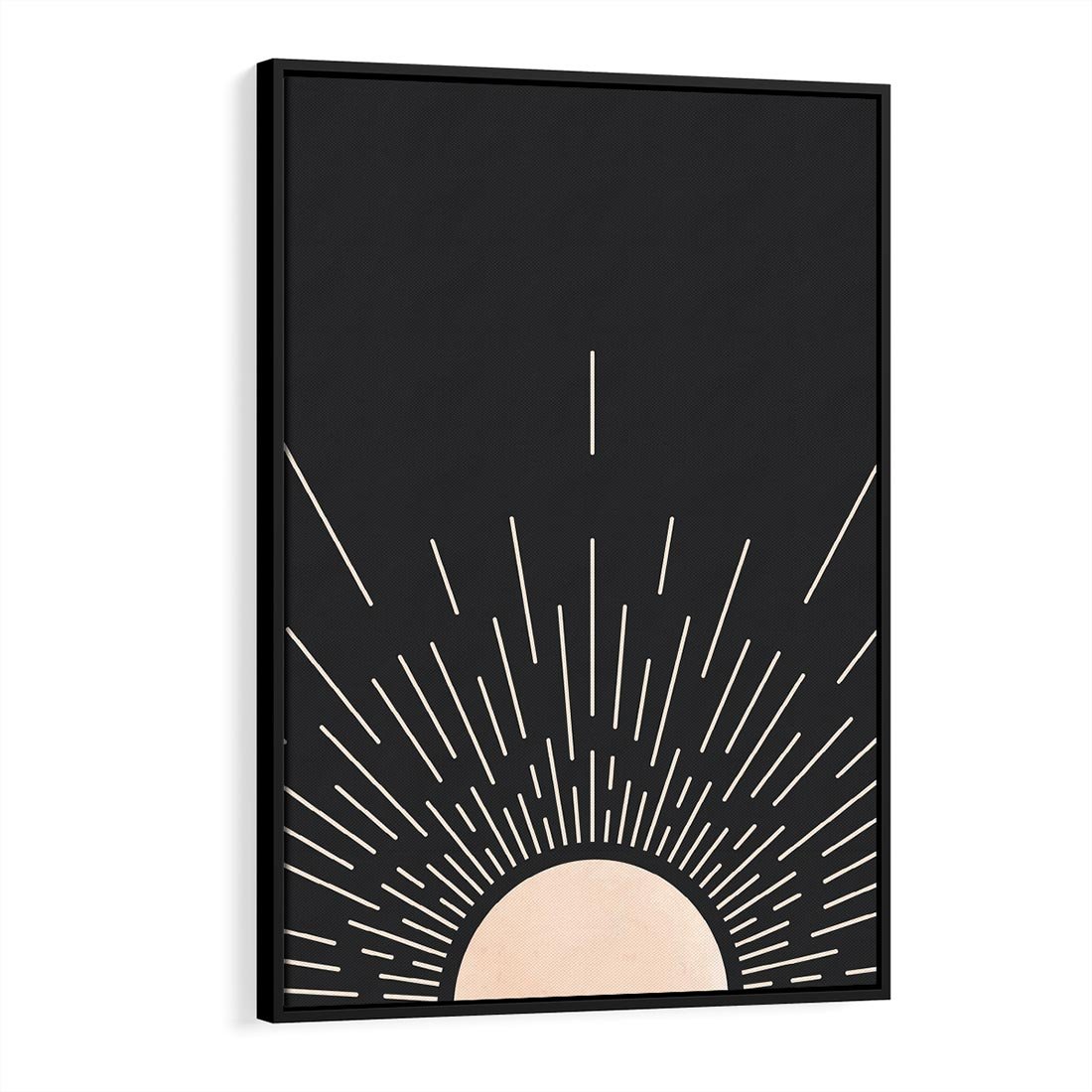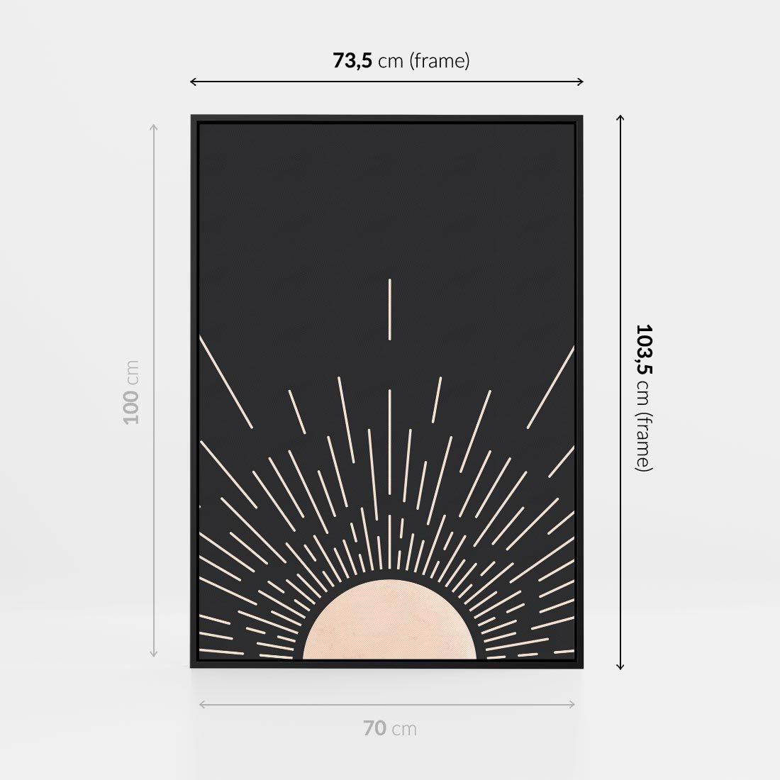 Obraz w ramie 70x100 - Słoneczny Portret Duszy - boho czarne słońce, nowoczesna grafika - rama czarna