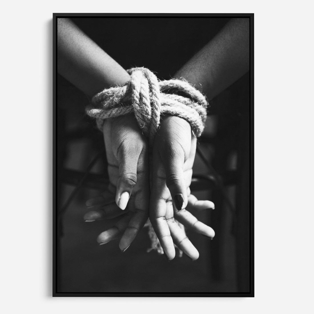 Ta czarno-biała fotografia jest wyrazem artystycznego podejścia do tematu. Zdjęcie przedstawia dwie dłonie, które są związane liną, tworząc nie tylko fizyczne połączenie, ale także symboliczne. To zdjęcie może być interpretowane na wiele różnych sposobów, co czyni je inspirującym i enigmatycznym dziełem sztuki. Czarno-biała paleta kolorów dodaje temu zdjęciu dramatyczności i podkreśla kontrast między dłońmi. To doskonałe zdjęcie do nowoczesnych wnętrz, które cenią sobie abstrakcję i możliwość głębszych refleksji.