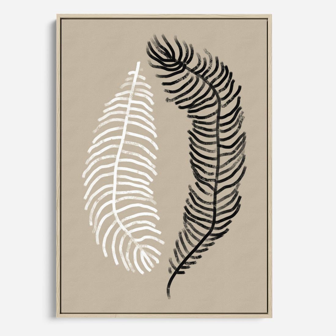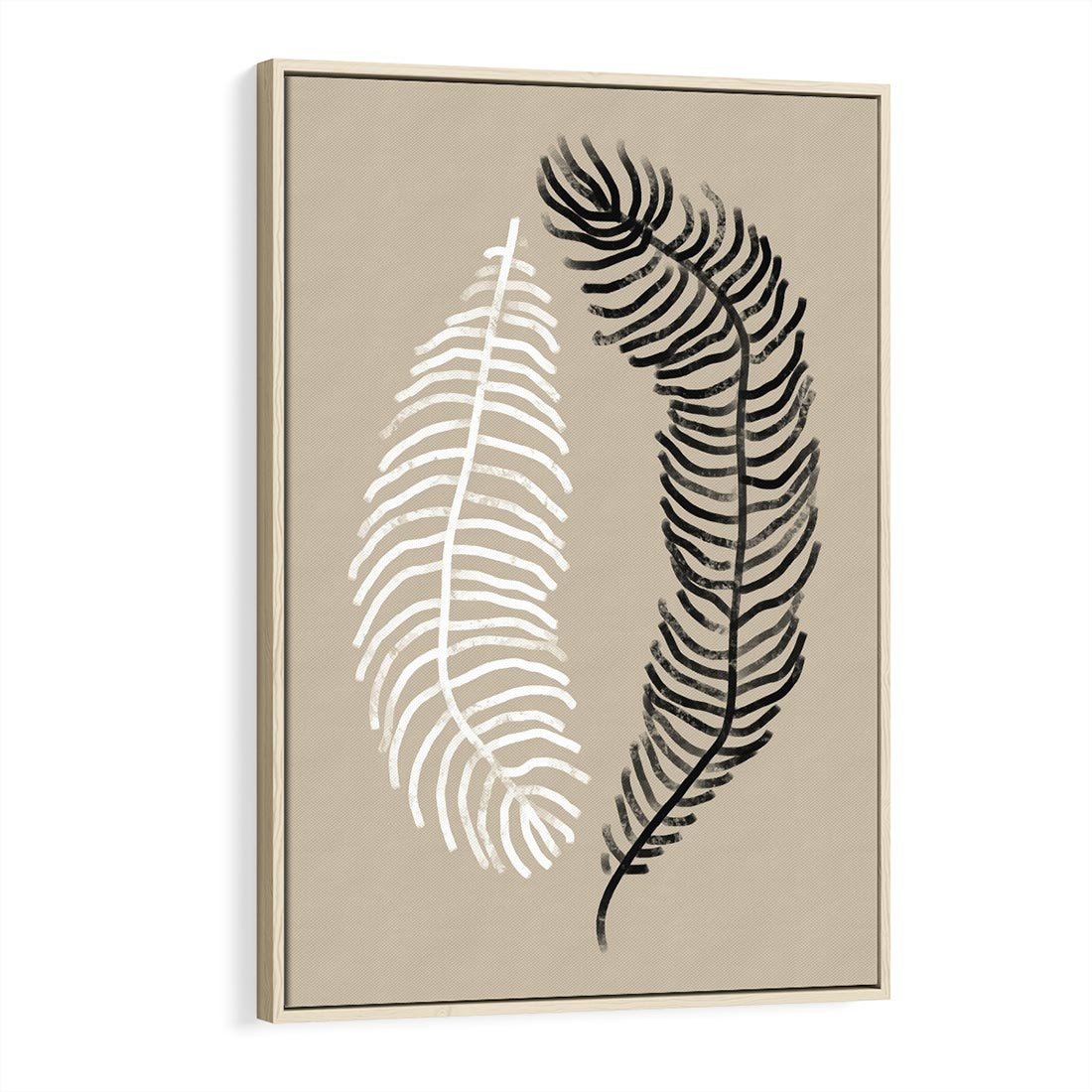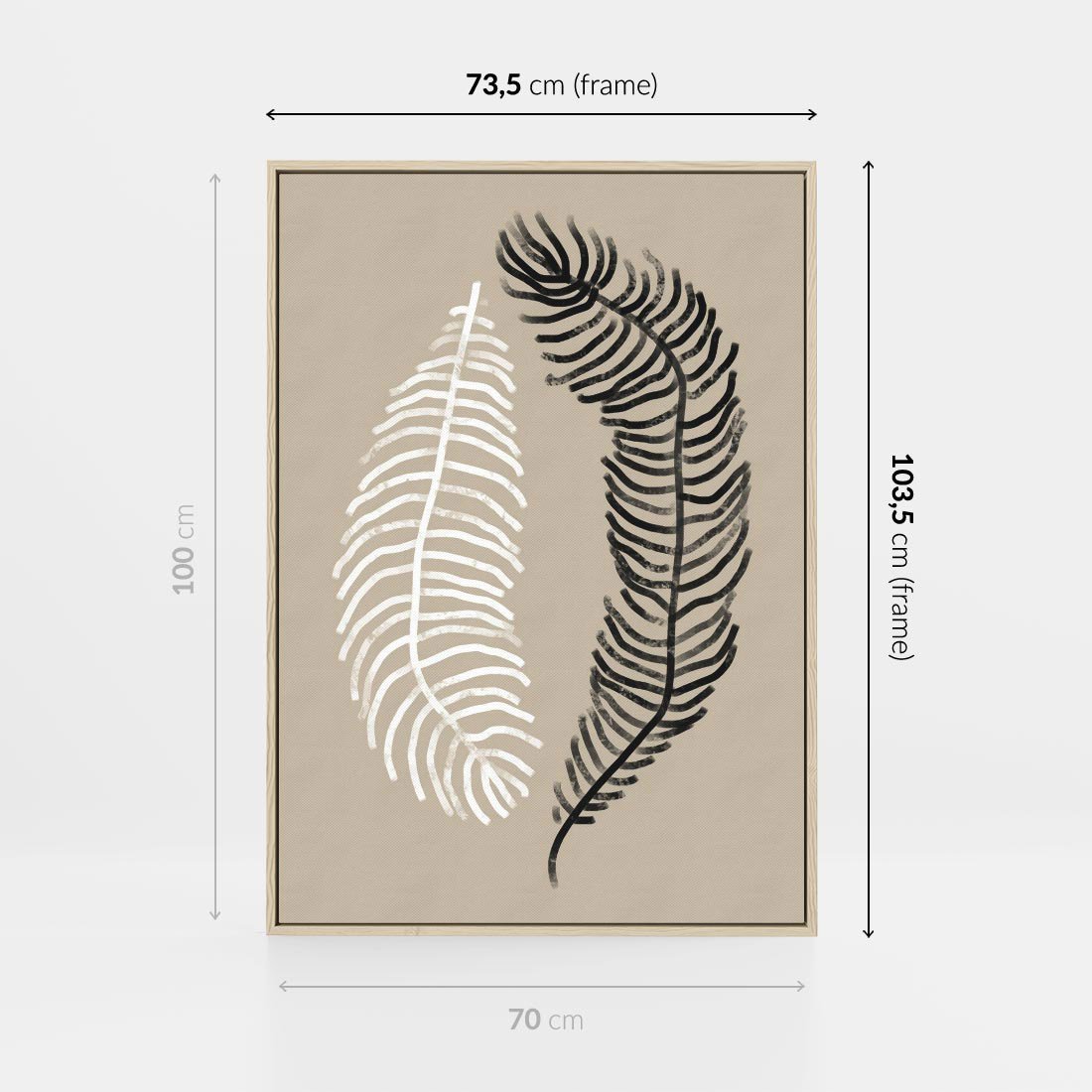 Nasza nowoczesna sztuka to minimalistyczna kompozycja białego i czarnego pióra na spokojnym beżowym tle. To dzieło wydobywa piękno prostoty, gdzie subtelne kontrasty i delikatne linie tworzą wrażenie równowagi i elegancji. Ten obraz przyniesie do Twojej przestrzeni spokój i harmonię, oddając hołd estetyce, która podkreśla moc piękna w prostych detalach.
