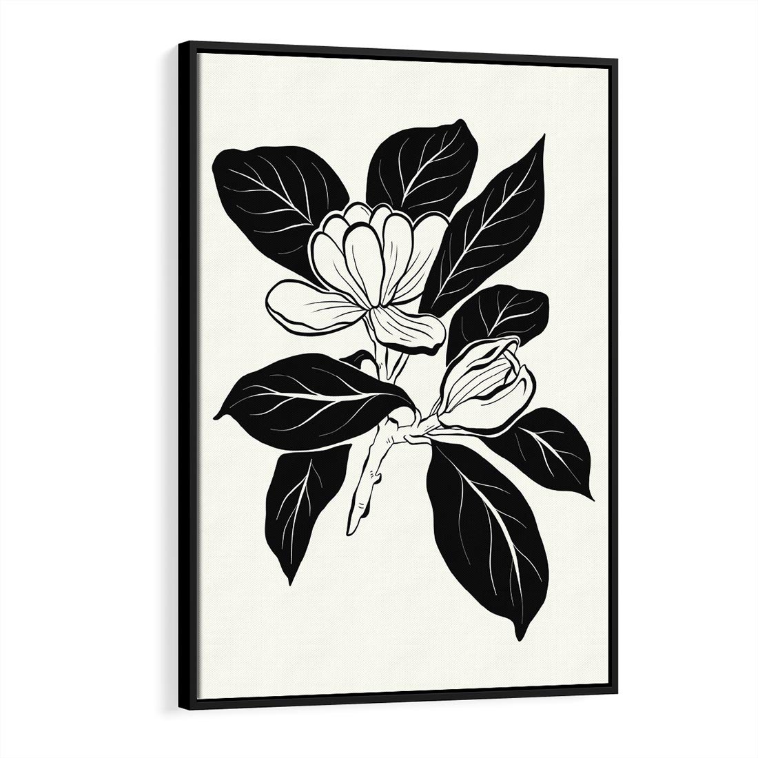 Obraz w ramie 70x100 - Spojrzenie w kształty kwiatów - kwiaty magnolii, minimalizm - rama czarna