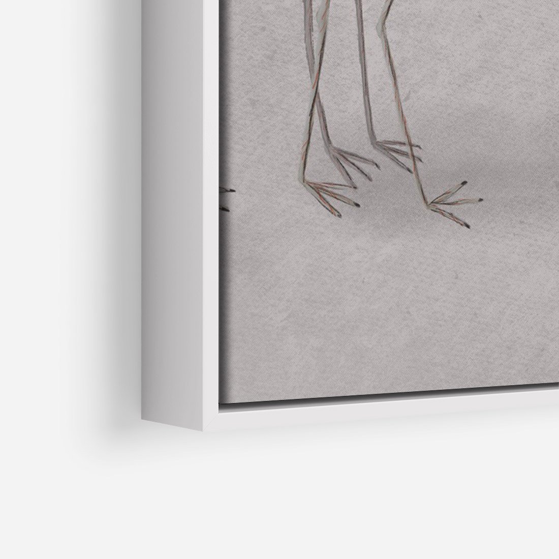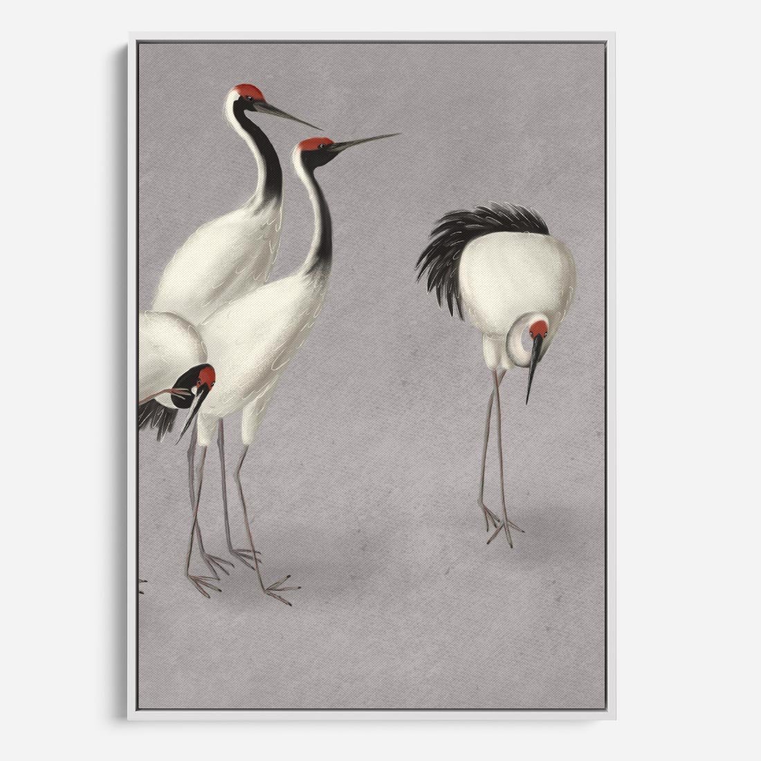 Obraz w ramie 70x100 - Spojrzenie wstecz w pędzlu - szkic rysunek, japońskie żurawie - rama biała