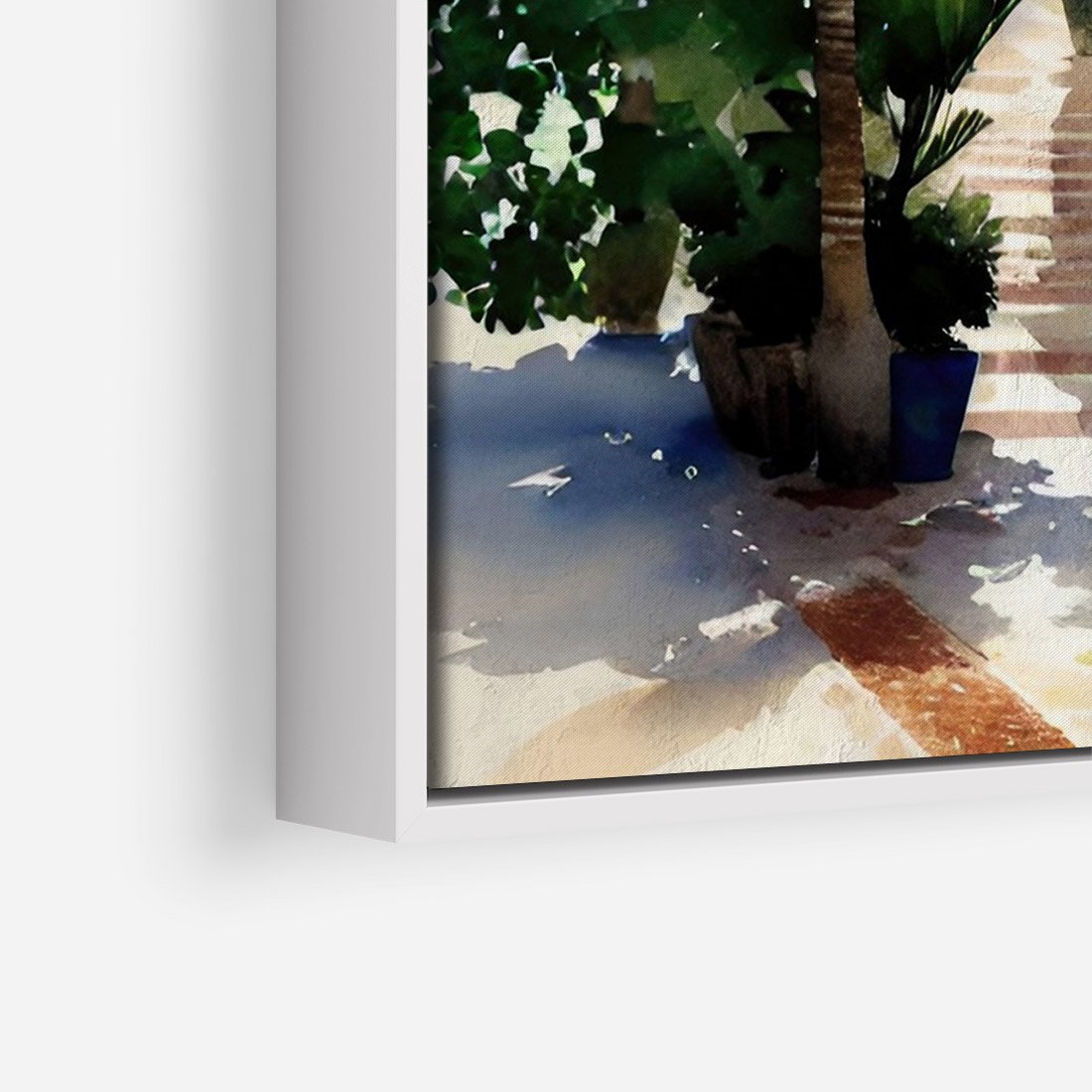 Ta akwarela przenosi nas w urokliwy śródziemnomorski klimat. Na obrazie widzimy urokliwą uliczkę, otoczoną pięknymi budynkami. Palmy dodają temu pejzażowi charakterystycznego tropikalnego akcentu. Technika akwareli nadaje obrazowi delikatność i miękkość, podkreślając przyjemną atmosferę tego miejsca. To dzieło sztuki doskonale oddaje urok i spokój typowy dla miast i miejscowości nad Morzem Śródziemnym. Może być idealnym dodatkiem do wnętrza, które pragnie przenieść atmosferę tego regionu do swojego otoczenia.
