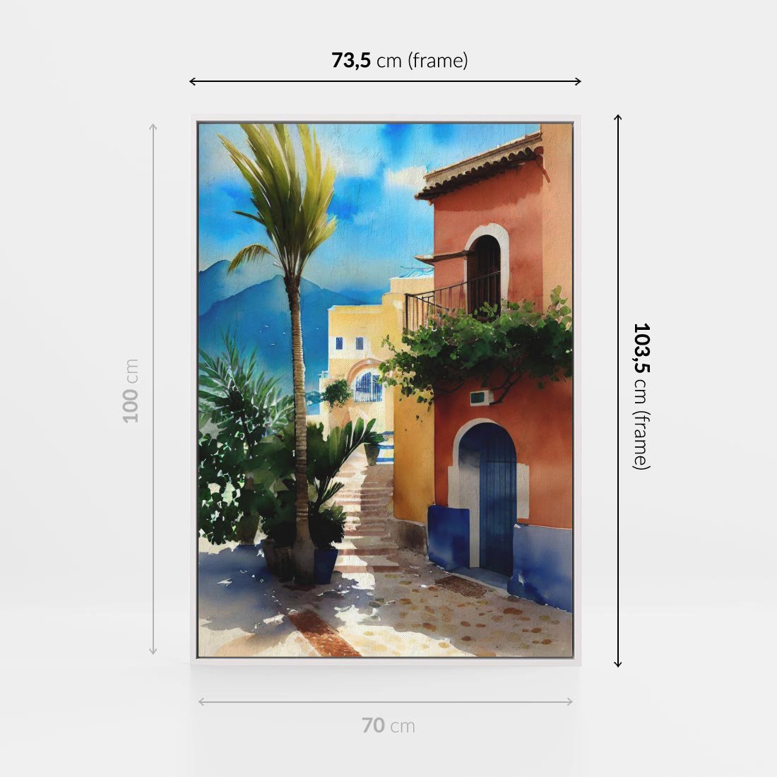 Obraz w ramie 70x100 - Spokój Miasta nad Morzem - akwarela, sródziemnomorski klimat - rama biała
