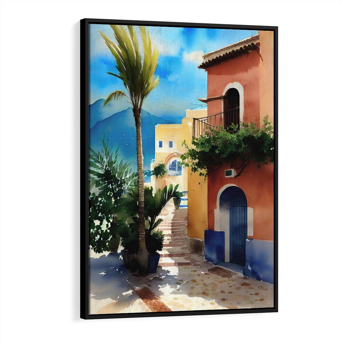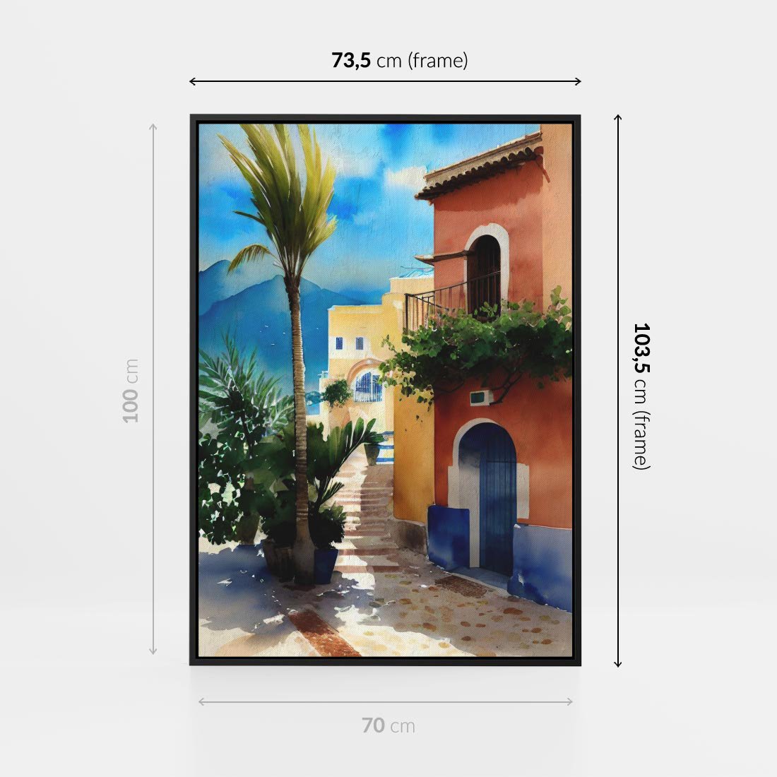 Obraz w ramie 70x100 - Spokój Miasta nad Morzem - akwarela, sródziemnomorski klimat - rama czarna
