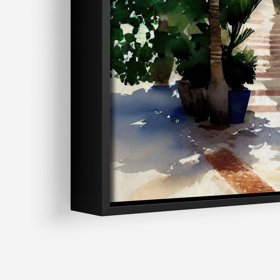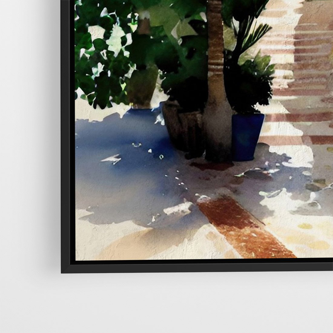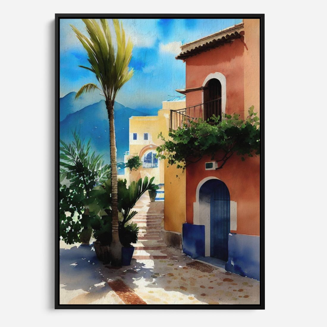 Ta akwarela przenosi nas w urokliwy śródziemnomorski klimat. Na obrazie widzimy urokliwą uliczkę, otoczoną pięknymi budynkami. Palmy dodają temu pejzażowi charakterystycznego tropikalnego akcentu. Technika akwareli nadaje obrazowi delikatność i miękkość, podkreślając przyjemną atmosferę tego miejsca. To dzieło sztuki doskonale oddaje urok i spokój typowy dla miast i miejscowości nad Morzem Śródziemnym. Może być idealnym dodatkiem do wnętrza, które pragnie przenieść atmosferę tego regionu do swojego otoczenia.