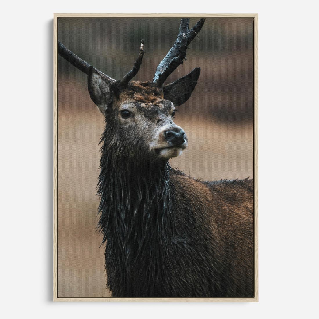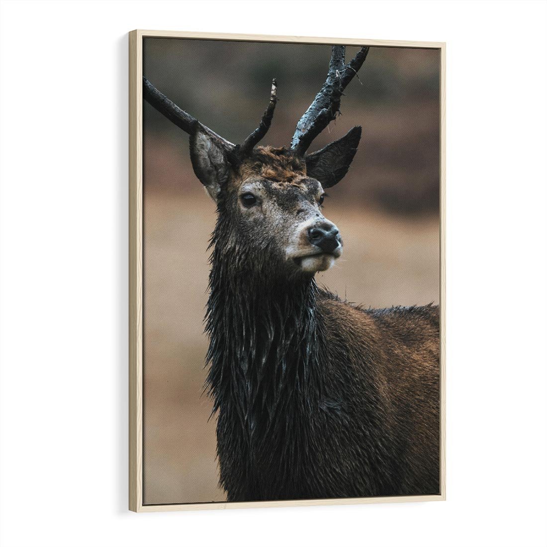 Obraz w ramie 70x100 - Spokojny jeleń - jeleń, las - rama drewno