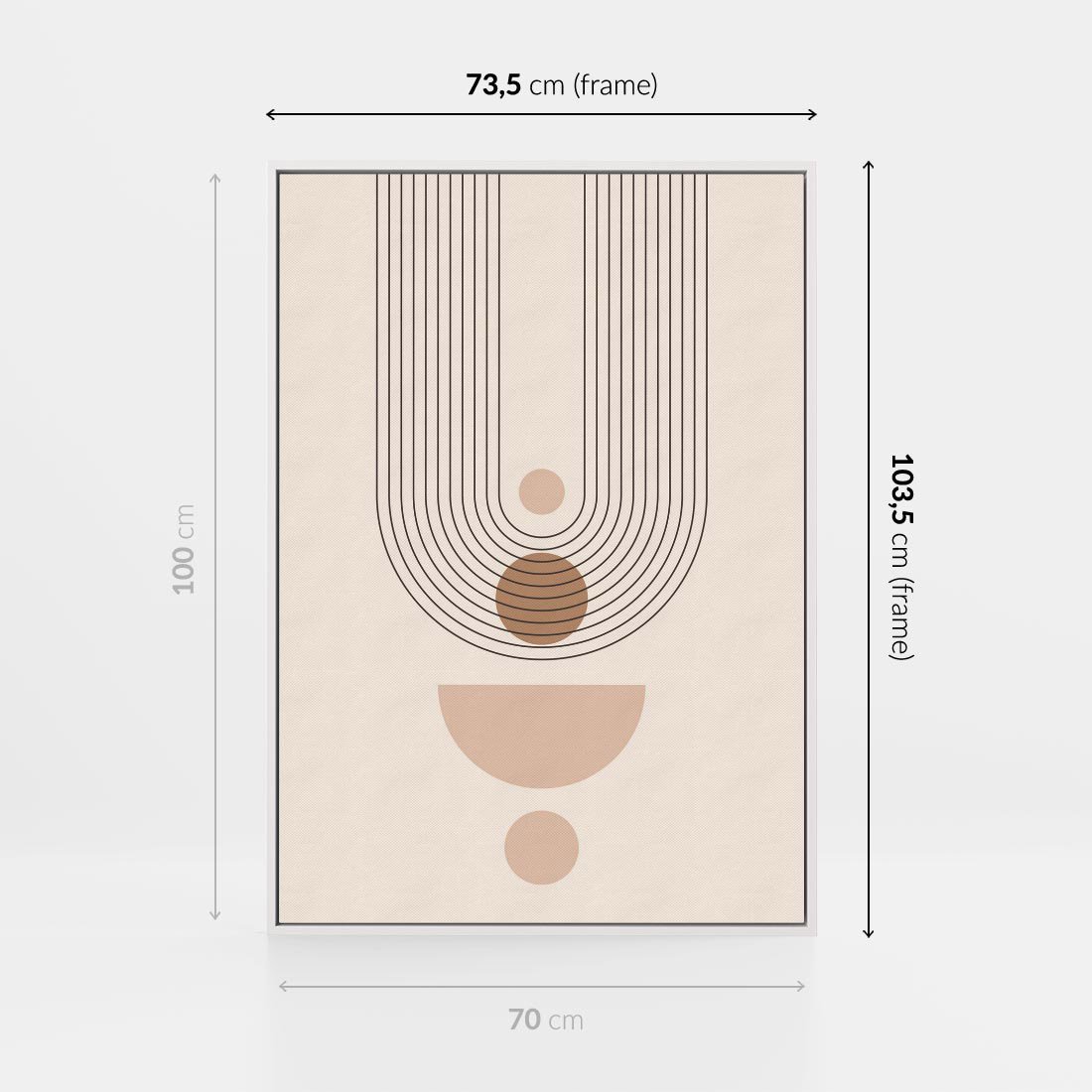Nasz boho plakat łączy w sobie estetykę minimalizmu i nurtu mid century w delikatnych beżowych odcieniach. To artystyczne połączenie wprowadza do Twojej przestrzeni wyjątkową harmonię i spokój, oddając ducha zarówno stylu boho, jak i estetyki mid century.
