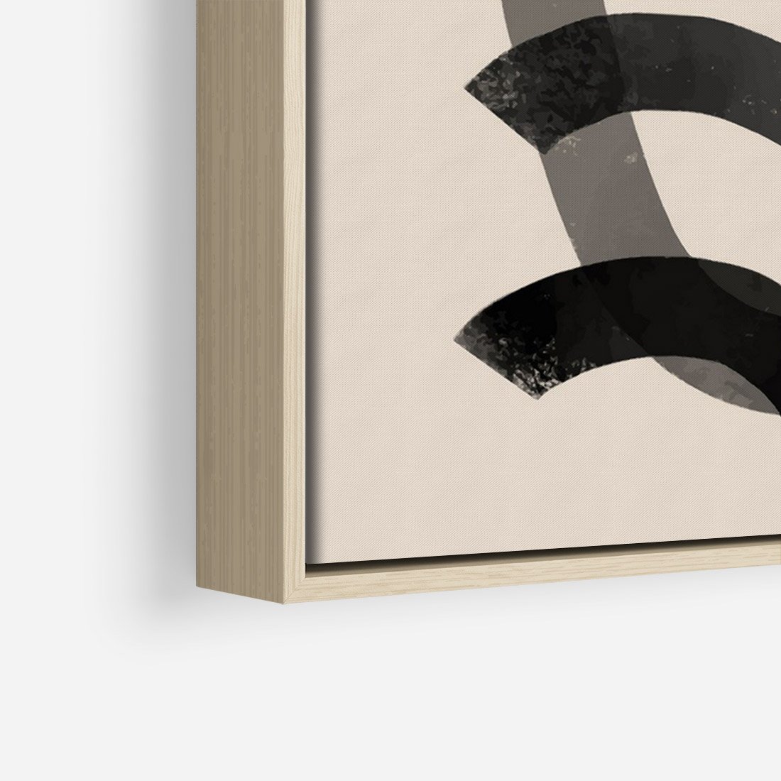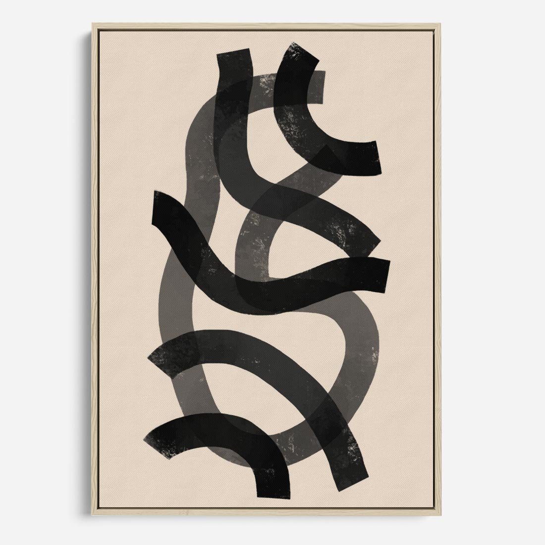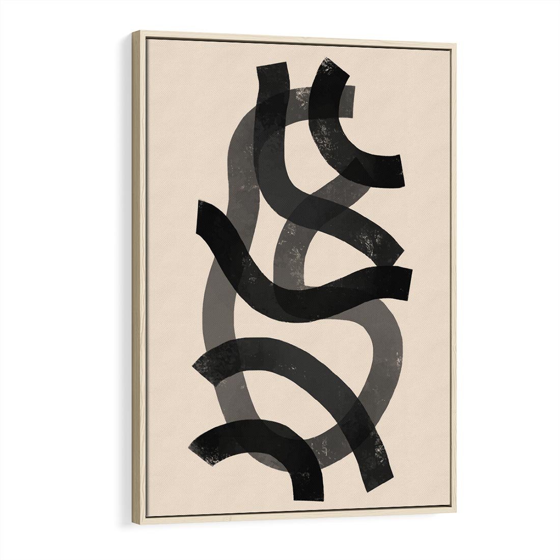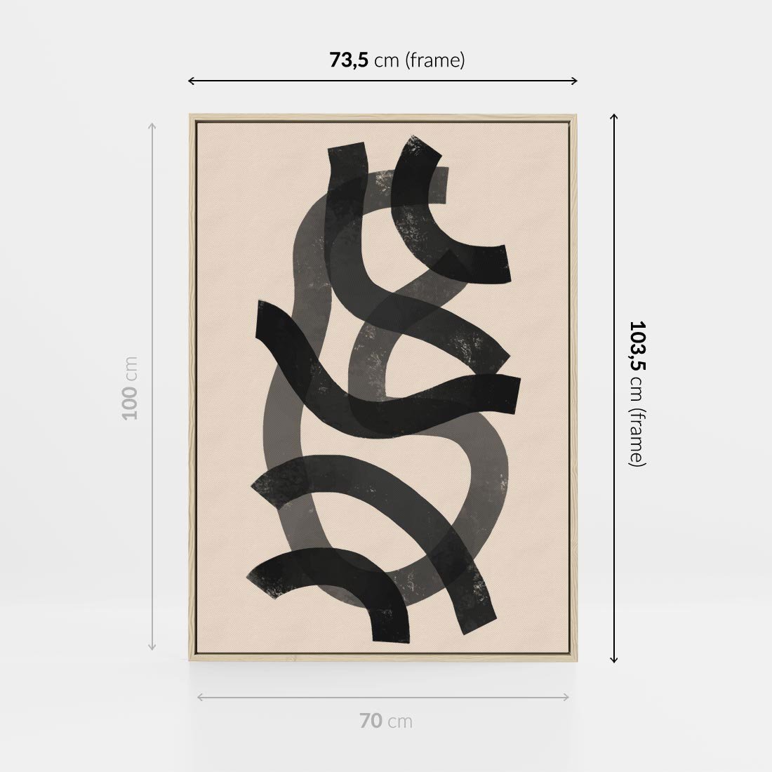 Obraz w ramie 70x100 - Strukturalne Odbicia Innowacji - zaplątane minimalistyczne linie, na bezowym tle - rama drewno
