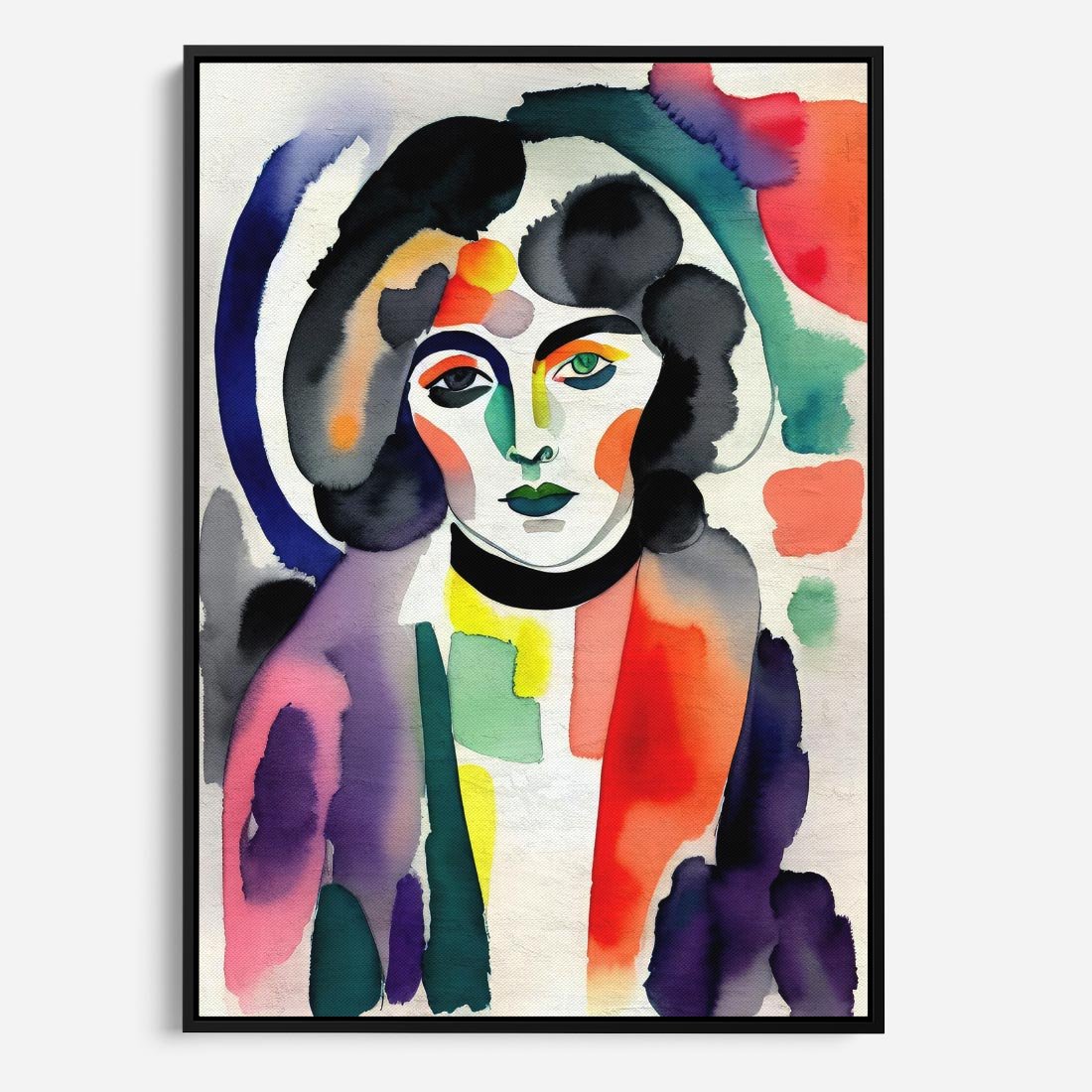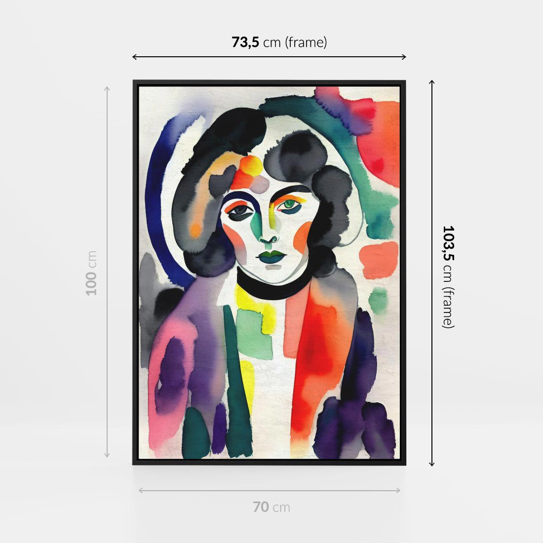 Obraz w ramie 70x100 - Subtelne Akwarelowe Ulotności - abstrakcyjny akwarelowy portret kobiety, rozmyte farby - rama czarna